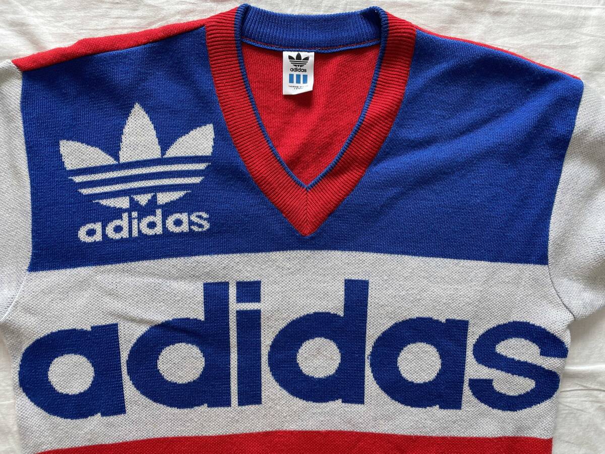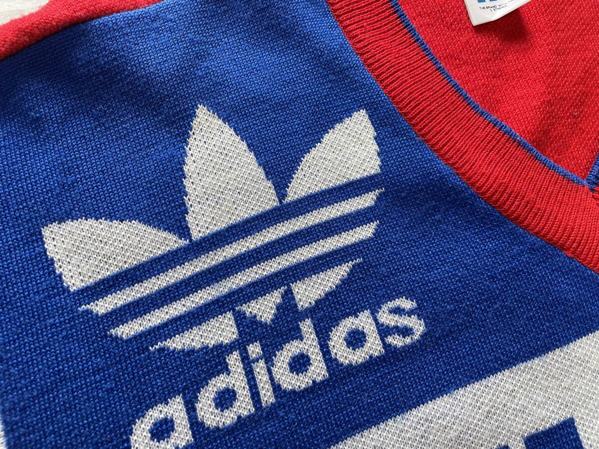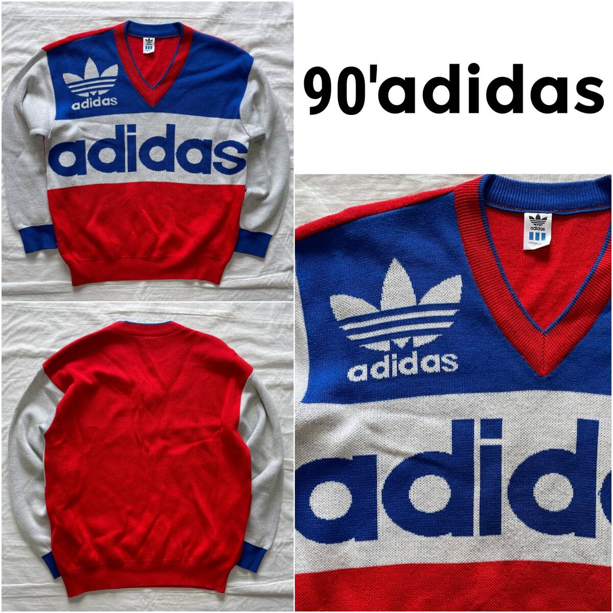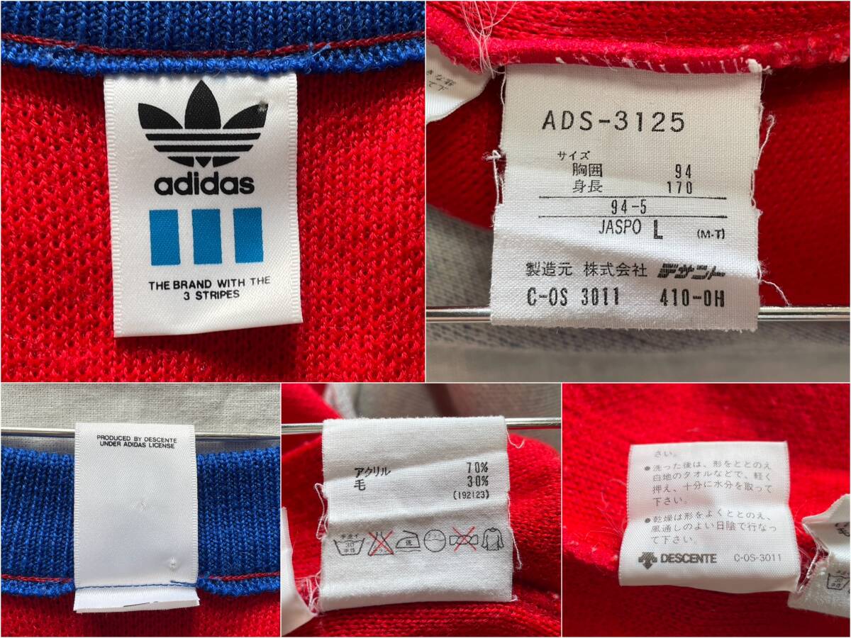 90' adidas アディダス セーター Lサイズ ADS-3125 ビンテージ デサント正規品 オリジナルス ウール ニット トレフォイル トリコロール