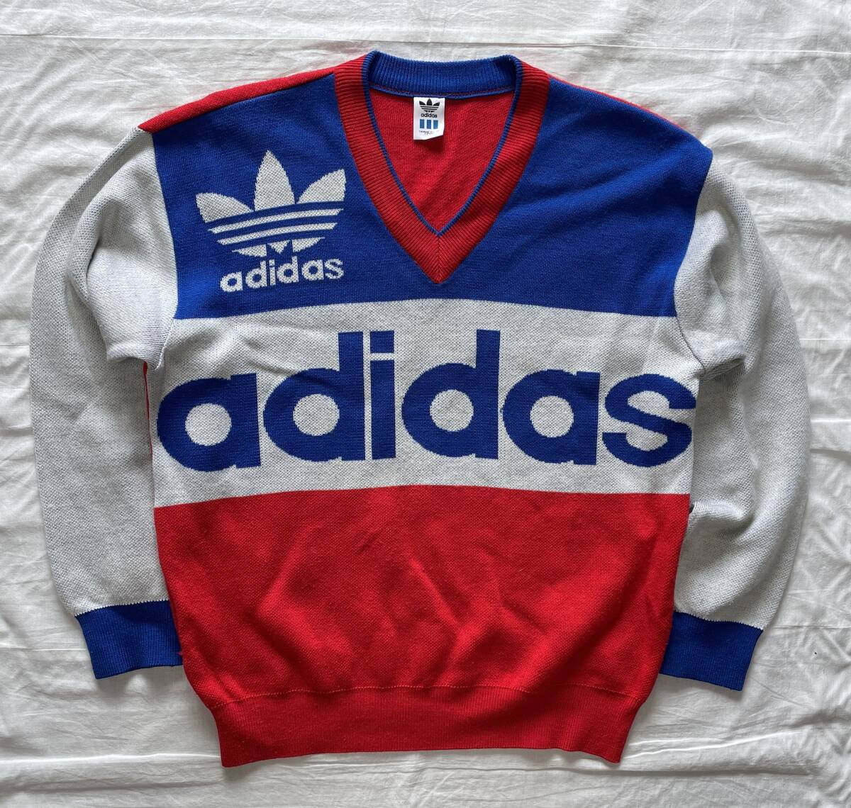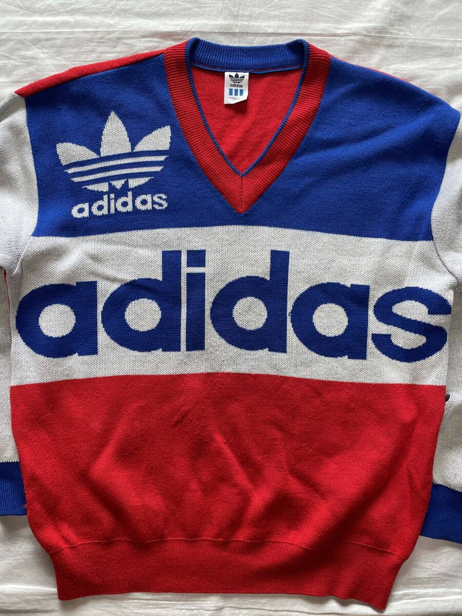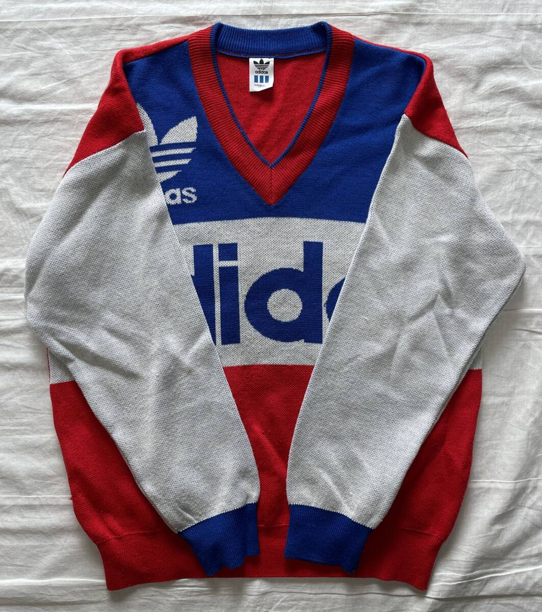 90' adidas アディダス セーター Lサイズ ADS-3125 ビンテージ デサント正規品 オリジナルス ウール ニット トレフォイル トリコロール