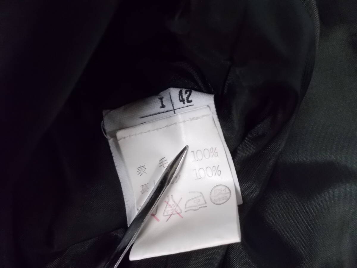 ◆サイズ表記 I 42 ◆カラー ブラック系 ◆素材ウール100% 裏地キュプラ100% ◆素人寸法ですが、身幅48cm 肩幅42cm 袖丈61cm 着丈64cmです ◆若干の誤差は、お許しください ◆当社実寸測定方法はこちらでご確認下さい ◆画像は実際の色とデジカメ、モニターの性能上多少異なる場合があります ◆胸に数mm程の小破れがあります。その他特に気になるシミ、ダメージ等は、ありませんが、used品の為クレーム、返金はご遠慮ください |