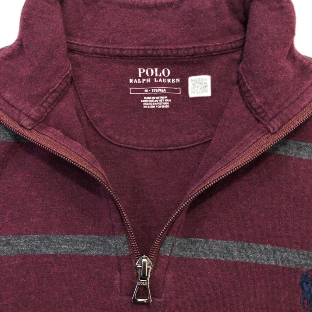 [商品管理番号] T5319 [ブランド] Polo by Ralph Lauren/ポロ ラルフローレン [サイズ] M [実寸サイズ] 肩幅:約48cm 着丈:約64cm 身幅:約56cm 袖丈:約61cm [主な素材] 表地 : コットン [色] ワインレッド [仕様] ハーフジップ ボーダー [状態] 特記事項:色褪せ、タグ欠損 | |||