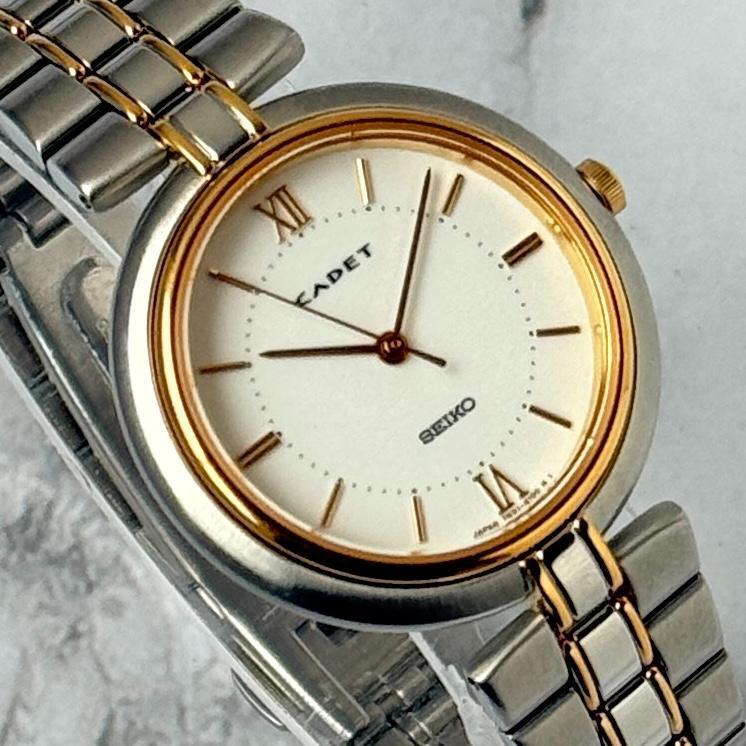 1円スタート腕時計メンズ電池交換済みセイコーSEIKOカデット7N01-6040クォーツ美品QZアナログ白文字盤アンティーク紳士ヴィンテージU2543