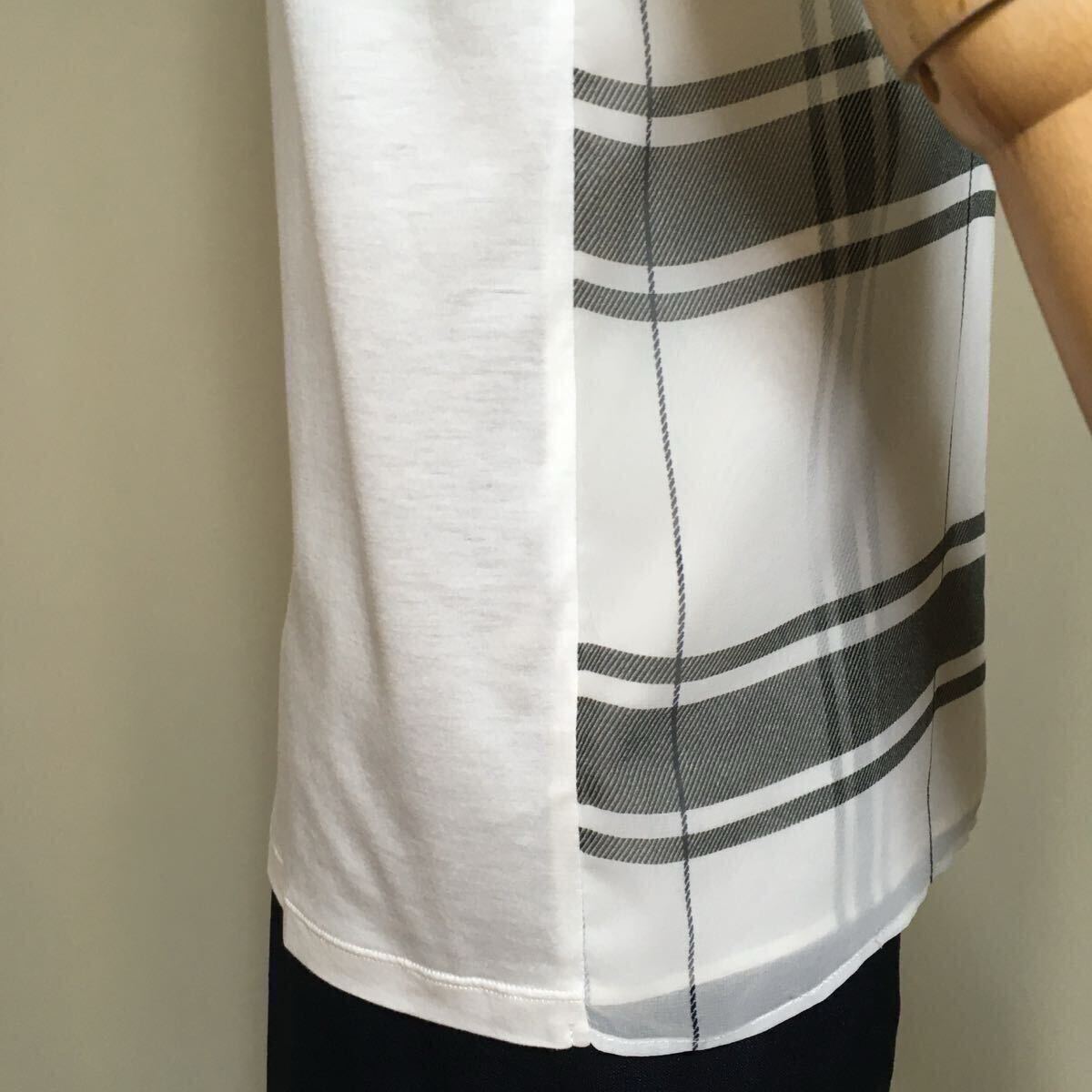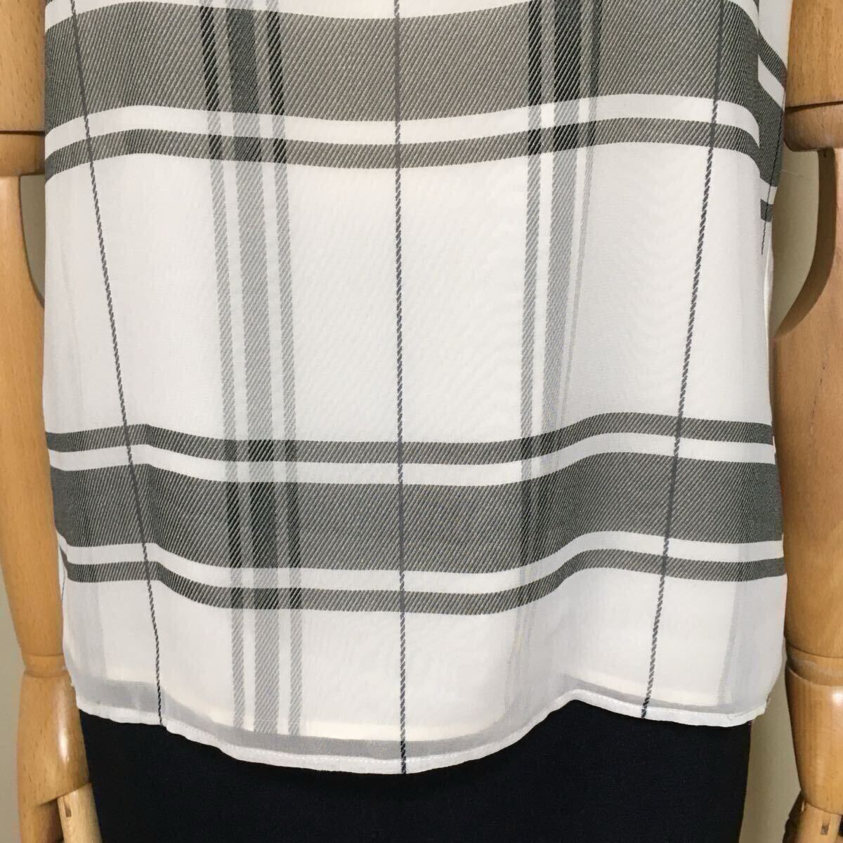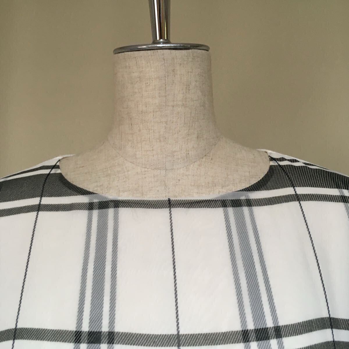 ・前身頃はチェック柄生地の上に、さらにチェック柄のシフォン生地が重なっており、立体的な見え方がします。