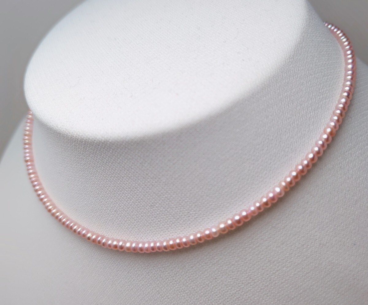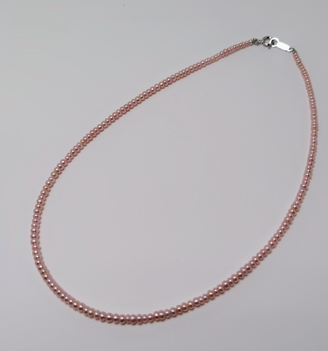 ネックの細い方☆P.真珠志摩専科*淡水真珠極細(約2.5㎜~3.0㎜)パールネックレス*シルバー引き輪全長約36㎝