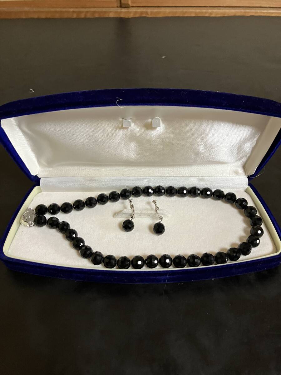 黒曜石シルバー ネックレス イヤリング 美品