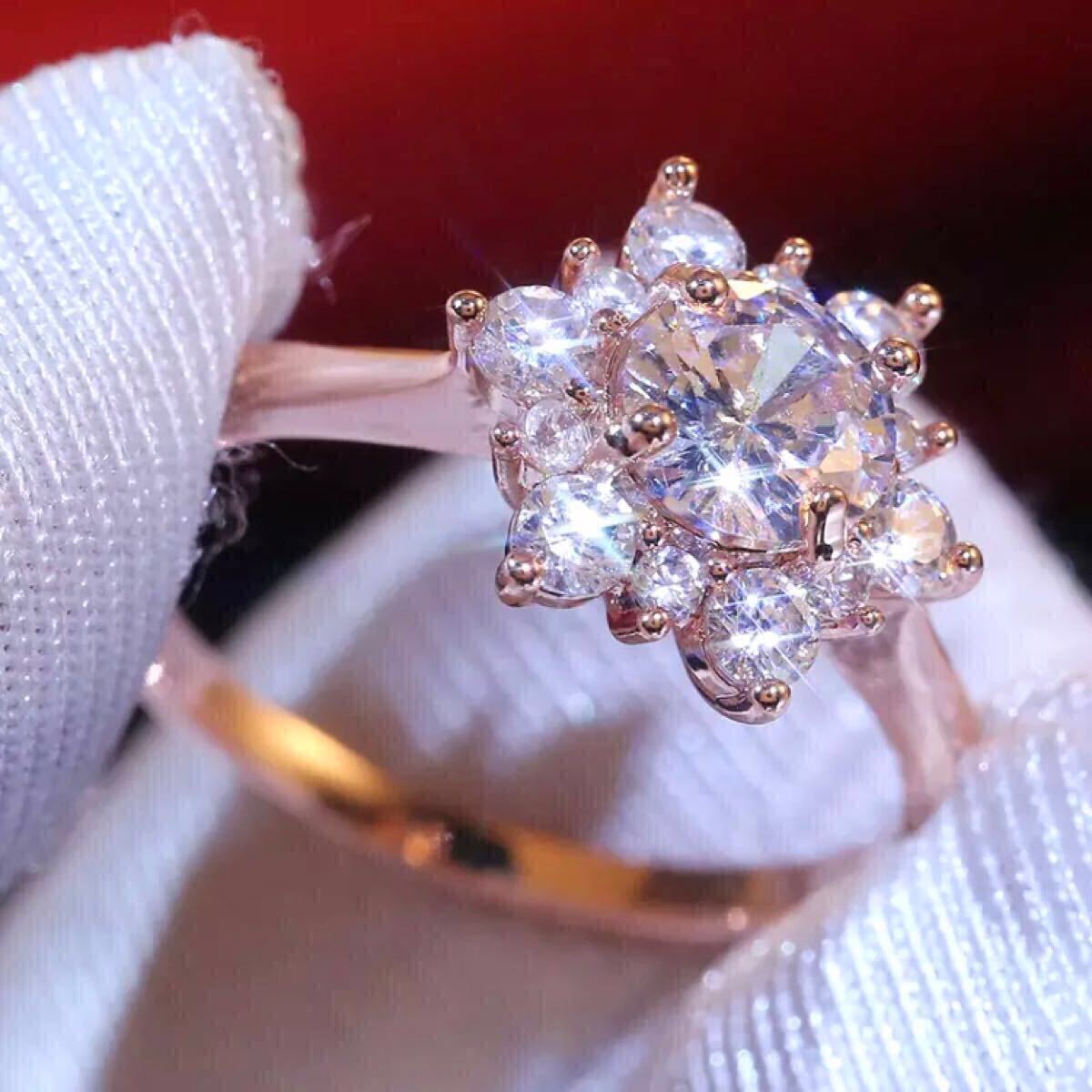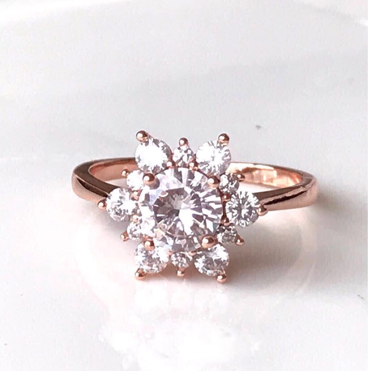 AAACZダイアモンドがキラキラと輝く、可愛らしいフラワーデザインリングです。シンプルなデザインで、どんなファッションにも合わせやすいお品です。