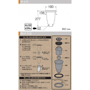 | 仕様 | BL仕様流し台用 取付ネジ径:156mm 取付方法等はパッケージに記載 |