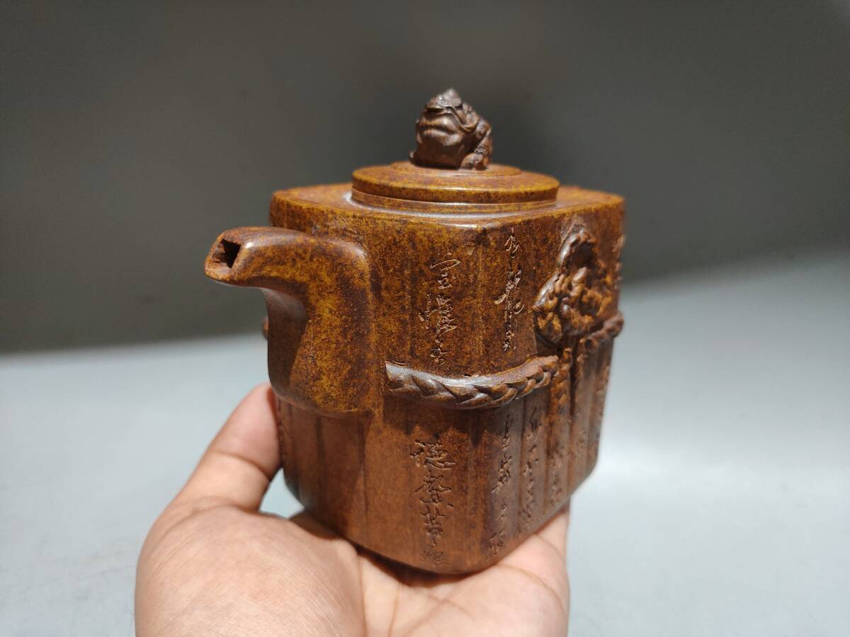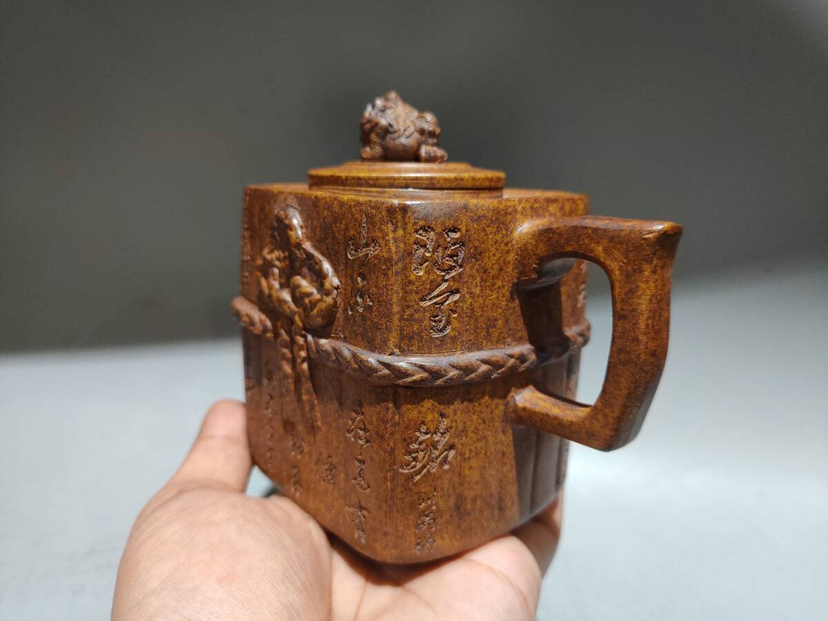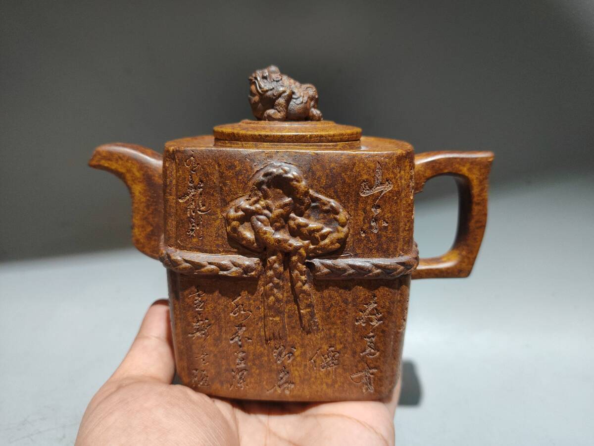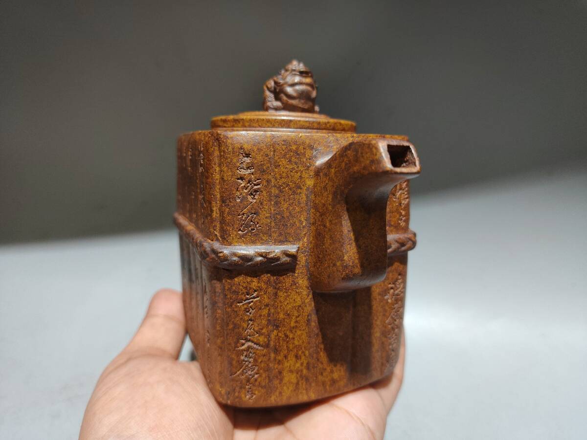 【超珍館蔵】紫砂壺 四方兵書壺 顧景舟款 龍骨金砂 茶具 茶道品 置物 賞物 古賞物 古董品 古美術品 時代物 旧家蔵出 稀少珍蔵品