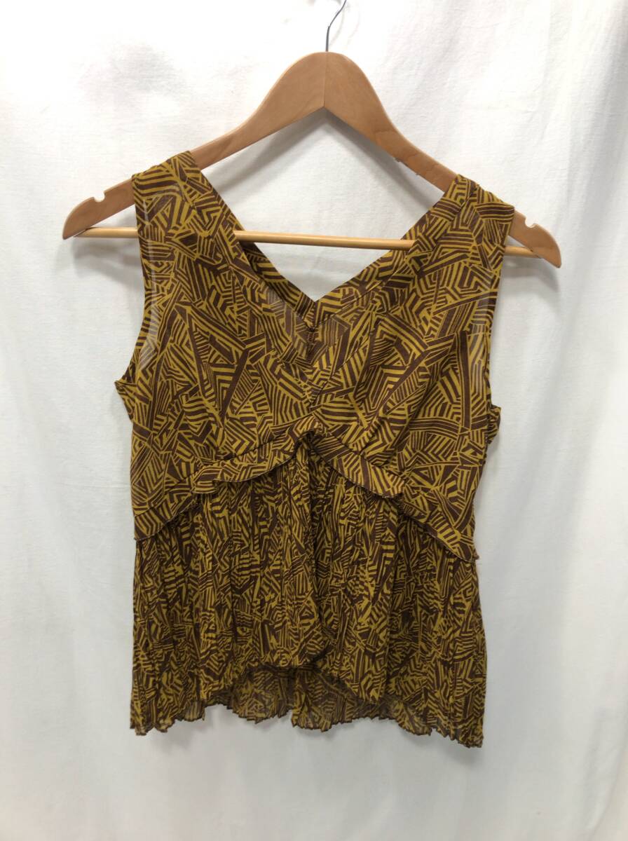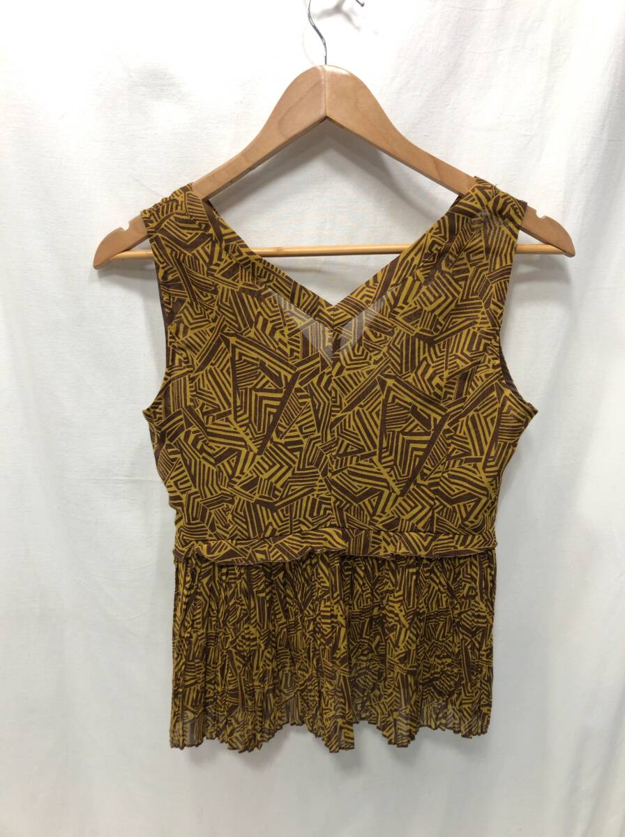 INDIVI ノースリーブ カットソー レディース 9 ブラウン系 フリル ギャザー 幾何学模様 インディヴィ B23