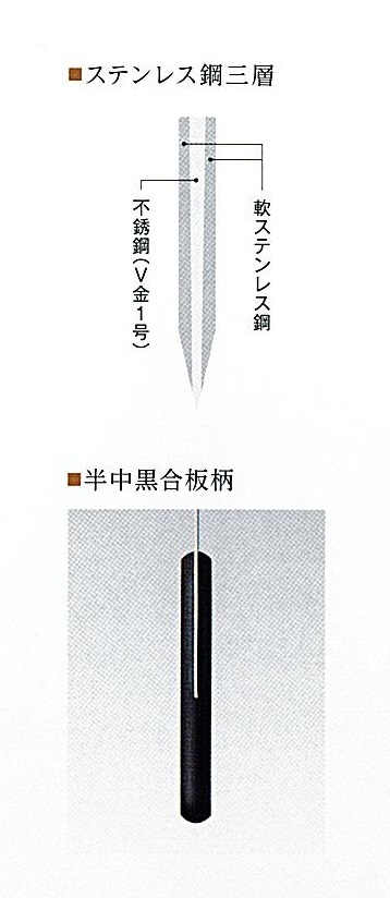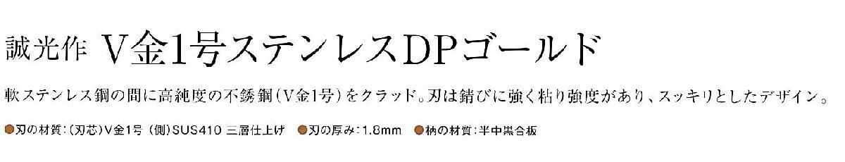 商品名・・料理包丁 家庭用 牛刀 誠光作 180mm 三層・両刃 黒合板柄