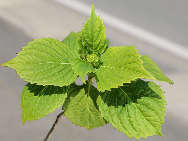 アジサイは日本の梅雨をイメージさせる有名な花木です。落葉低木で観賞用として多く植樹されています。幹は群生して枝分かれして高さ3.0mほどになります。葉は厚く表には光沢があります。5~7月に花が咲きます。花色は基本的に青紫色ですが土壌の酸度によって青みが強くなったり赤みが強くなったりします。ガクアジサイ、ヤマアジサイ、コアジサイ等、多種多様な園芸品種があります。花木として庭木にしたり、根締めとして使われたりします。