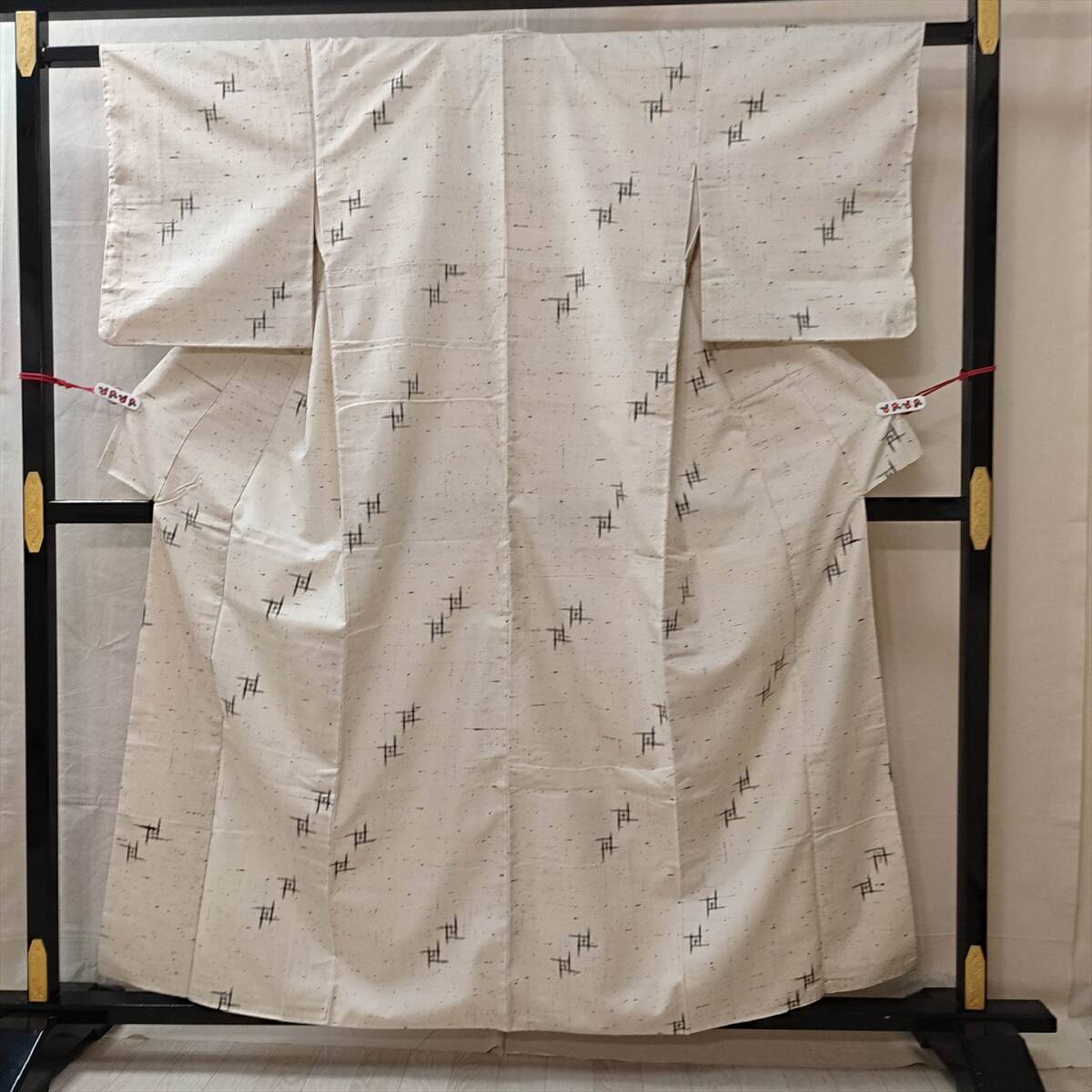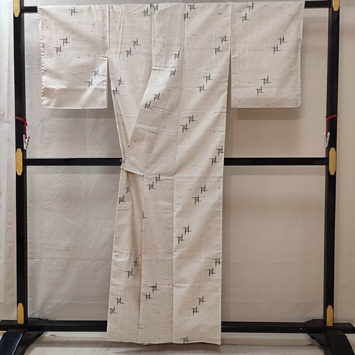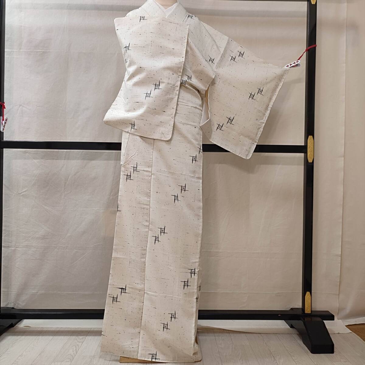 ■着物の越田■裄63.5身丈158紬袷★美品★絣ほっこりするお色味広衿スナップボタン付き ■へ12U15