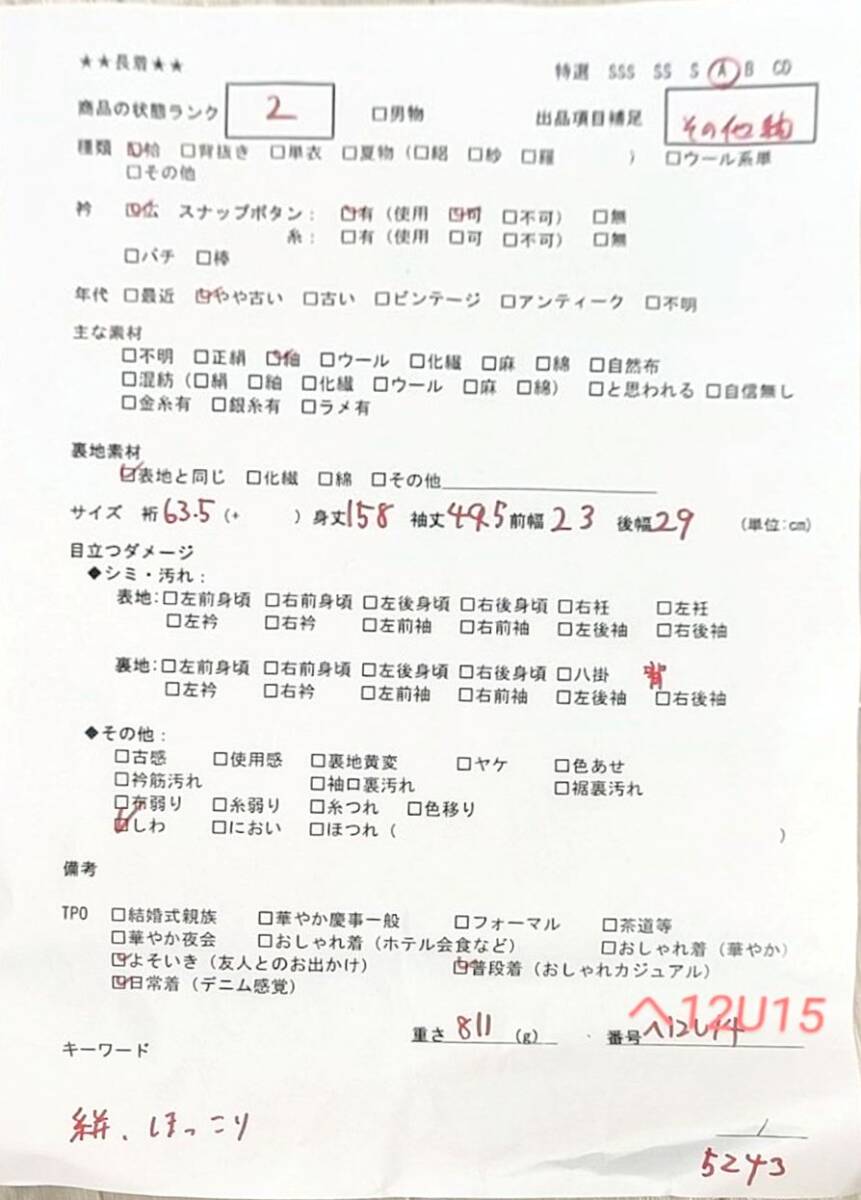 詳しくは写真2枚目の検品用紙の画像をご確認下さい。