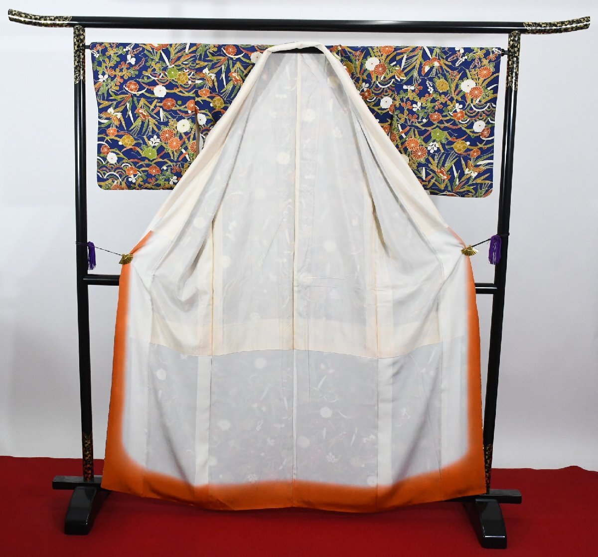 | サイズ | ▼身丈 (背中から) 156cm ▼裄丈 66 cm ▼袖丈 49cm ▼後巾 30cm ▼前巾 24cm |