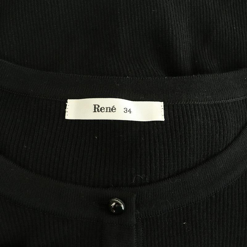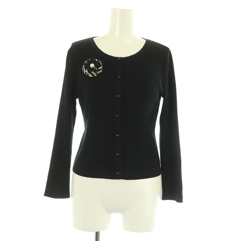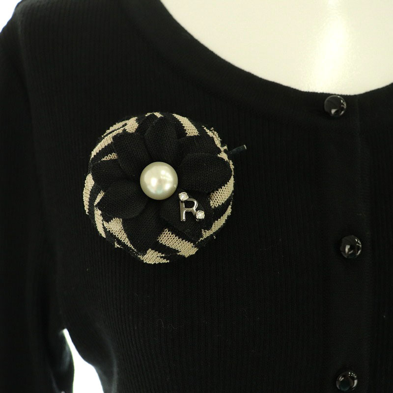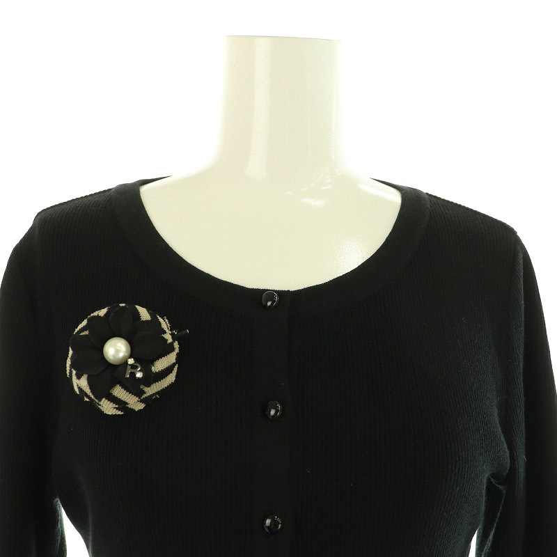 ルネ Rene コサージュ付き カーディガン ニット 七分袖 リブ 34 ブラック 6032180 /MY ■OS レディース