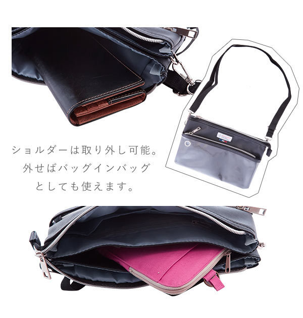 | 商品説明 | シンプルなサコッシュタイプのショルダーバッグです。フロントのファスナーポケットがPVC樹脂製のクリアータイプになっているのがポイント!ソーラーモバイルバッテリーを収納するのにちょうどよく、歩きながら太陽の光で充電が可能です。さらに、内部に充電コードを通せるリングホールも付いているので、メイン収納部分にしまったスマートフォンとも接続できます。 シルエットはコンパクトなサコッシュですが、メインポケットは3つのスペースに区切られており、長財布やスマートフォンなど、お出かけに必要なアイテムがしっかりと収納できるが嬉しいですね。ショルダーベルトを取り外して、セカンドバッグ、バッグインバッグとしても活躍します! |