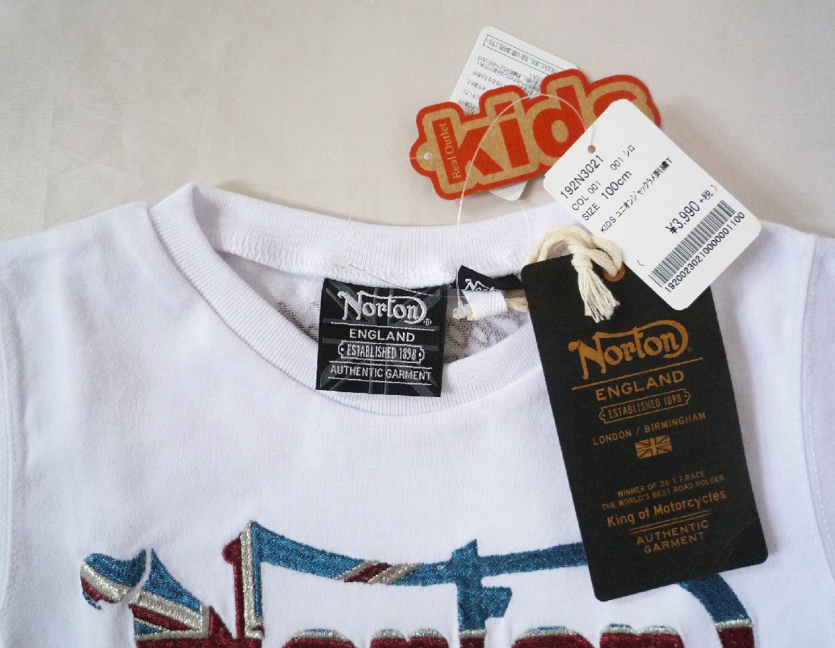 ノートン NORTON KIDS キッズ 子供用 半袖 Tシャツ 丸首 クルーネック ラメ入り刺繍 150サイズ ホワイト 白