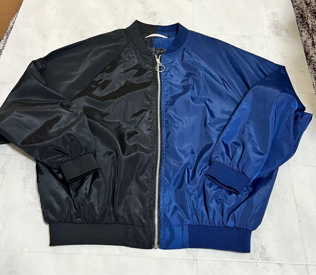 バイカラー ナイロンジャケット ネイビー ブラック バックプリント