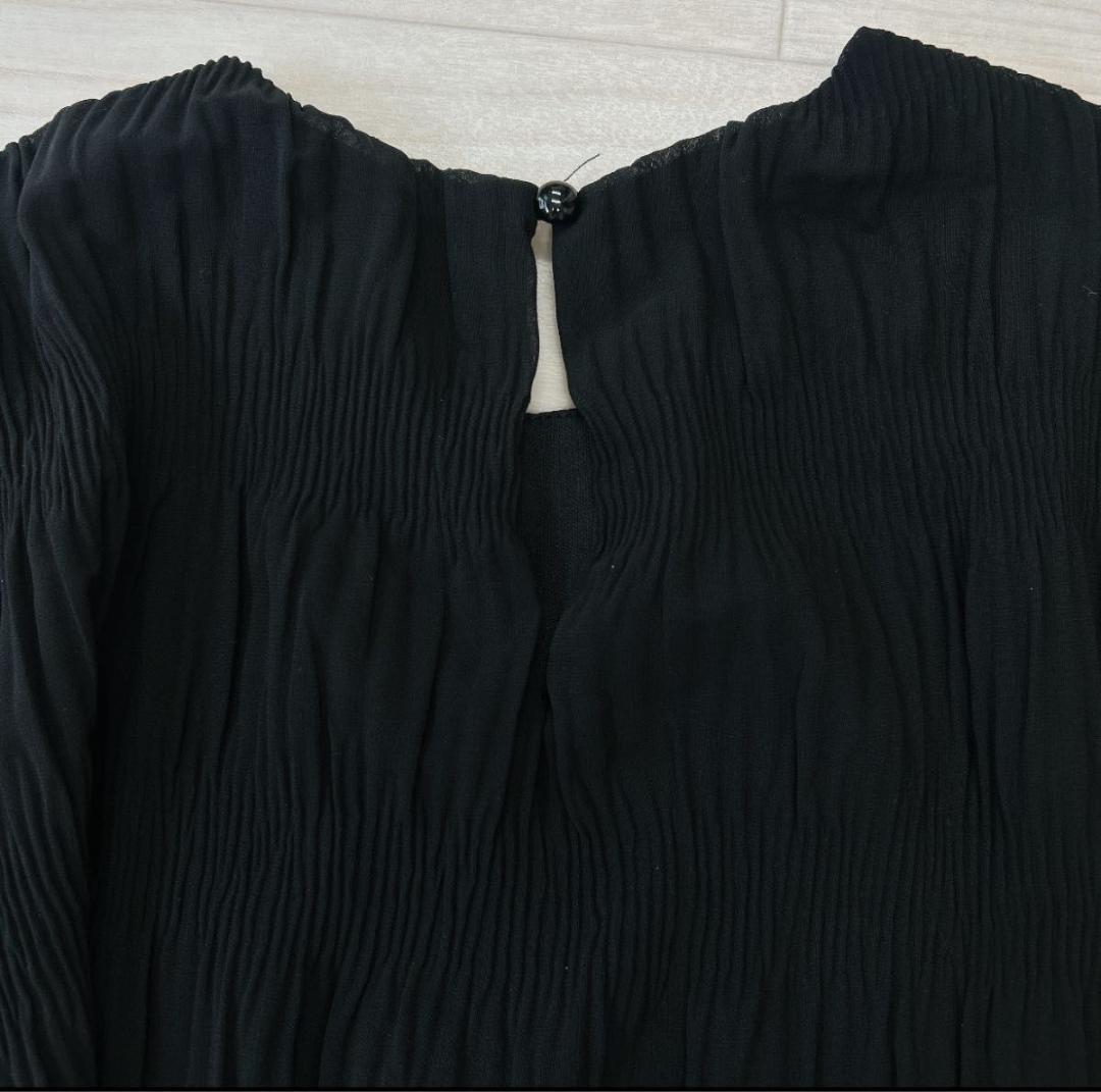 1211 シフォン シャーリング ブラウス 袖だけ透け感 裏地付き上品 オフィス