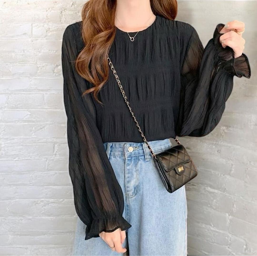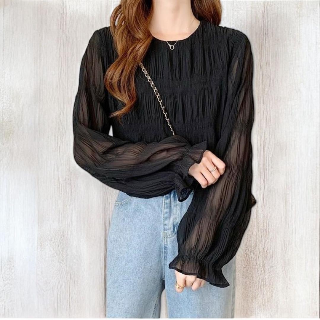 【上品な透け感が魅力】シフォンシャーリングブラウス