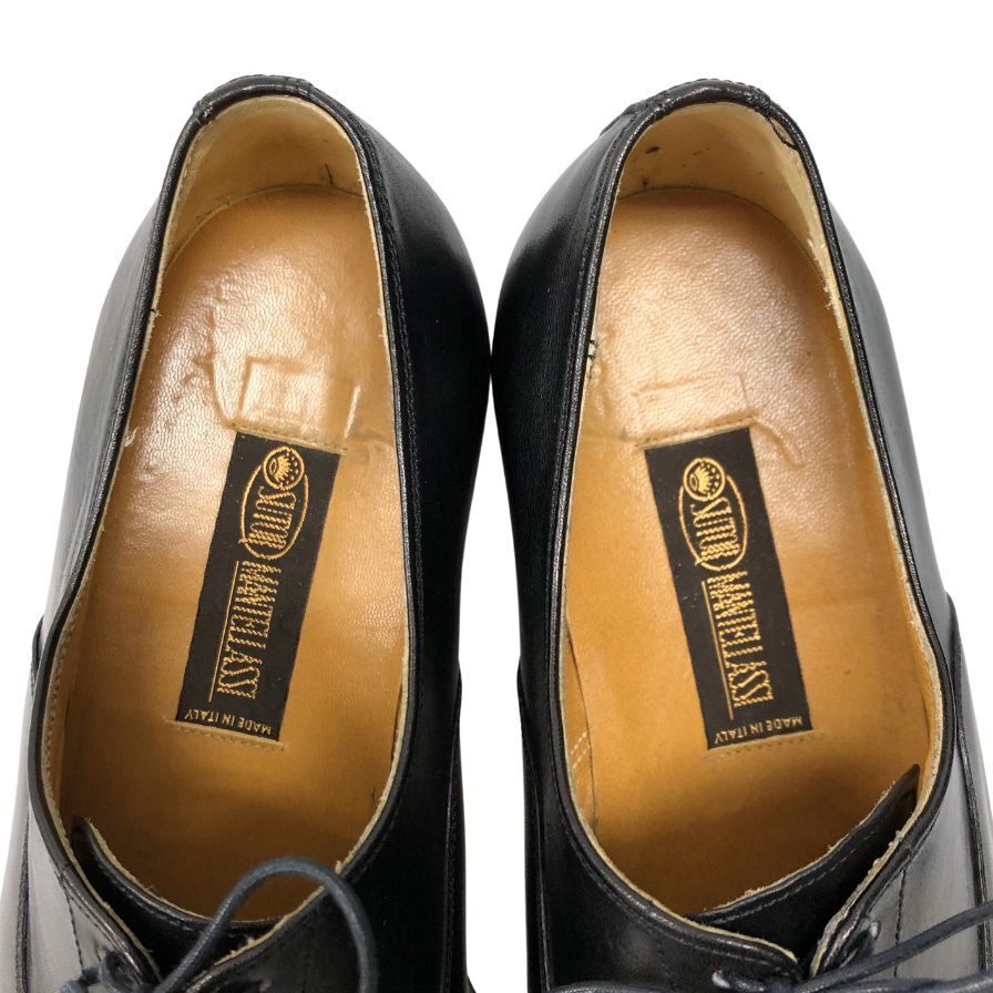 | 1912年にイタリア・フィレンツェで創業された「ストールマンテラッシ(SUTOR MANTELLASSI)」は、マンテラッシ兄弟が始めた小さな工房からスタートし、100年以上の歴史を持つ名門ブランドです。「SUTOR」はラテン語で「腕利きの靴修理人」を意味し、その名の通り、ハンドメイドの高品質な靴が特徴です。ブルーに彩られたソールの半カラス仕上げや、シャープなシルエットと足入れの良さが魅力で、クラシコシューズのアイコンであるスクエアトゥの元祖とも言われています。― 株式会社ストックラボによるオリジナルテキスト |