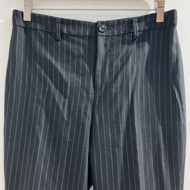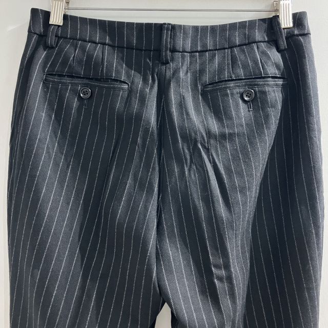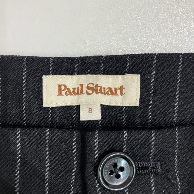 ポールスチュアート PAUL STUART 美品 スラックス パンツ ストライプ ウール ストレッチ素材 黒 ブラック 8 約M-L レディース