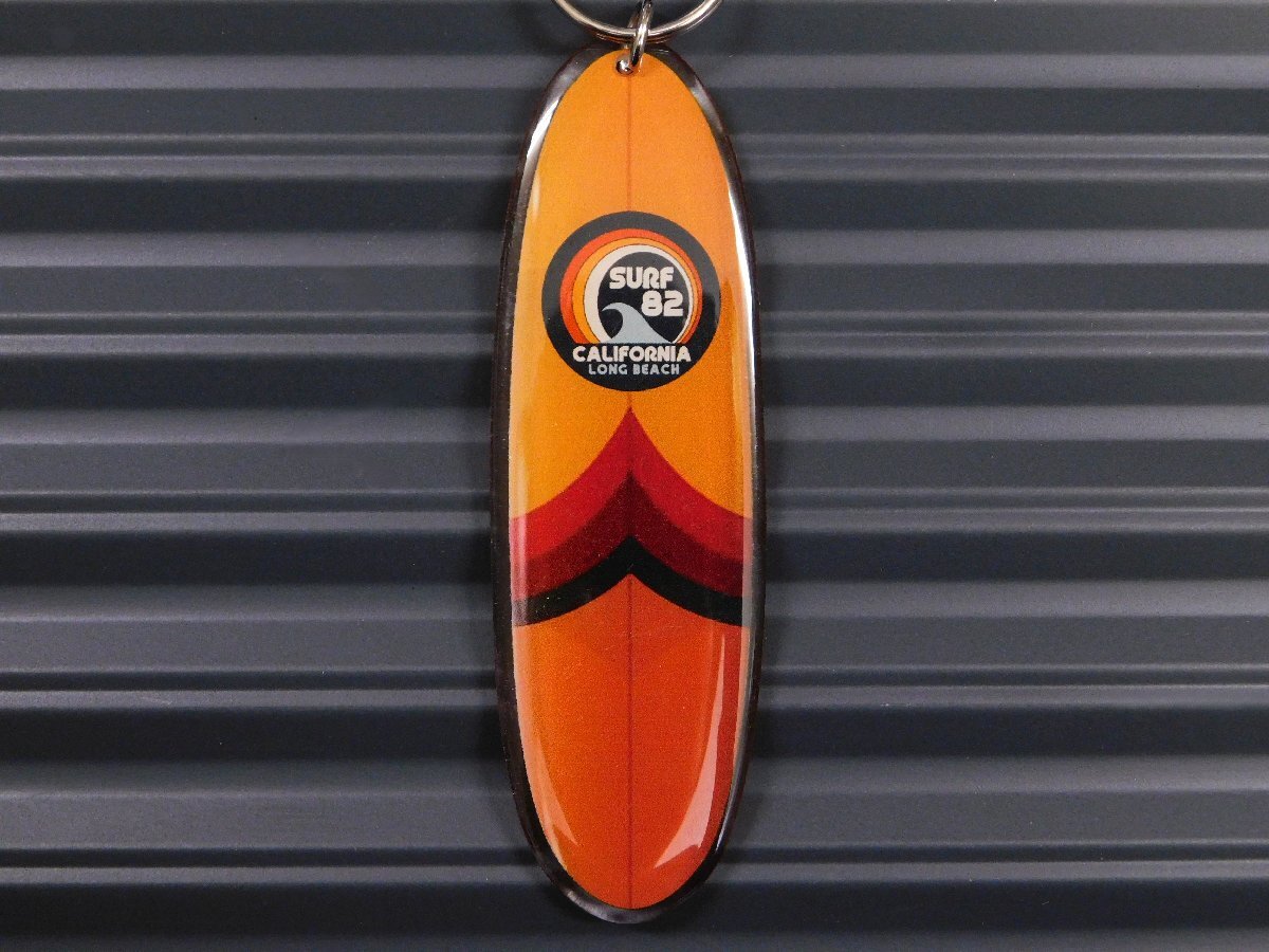 ◆送料\140◆【サーフキーチェーン】※《SURF 82 CALIFORNIA LONG BEACH / オレンジブラウン》 サーフボード アクリル キーホルダー