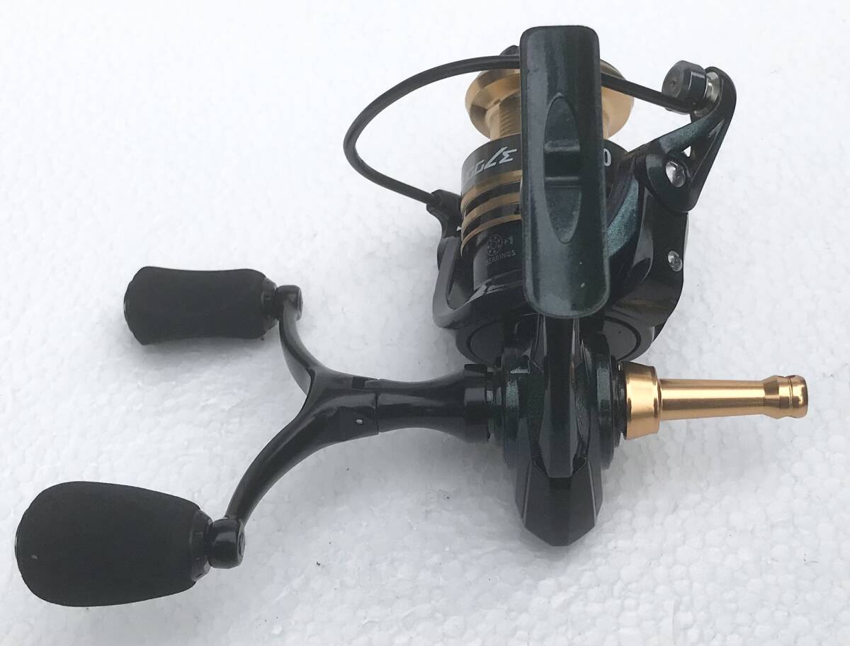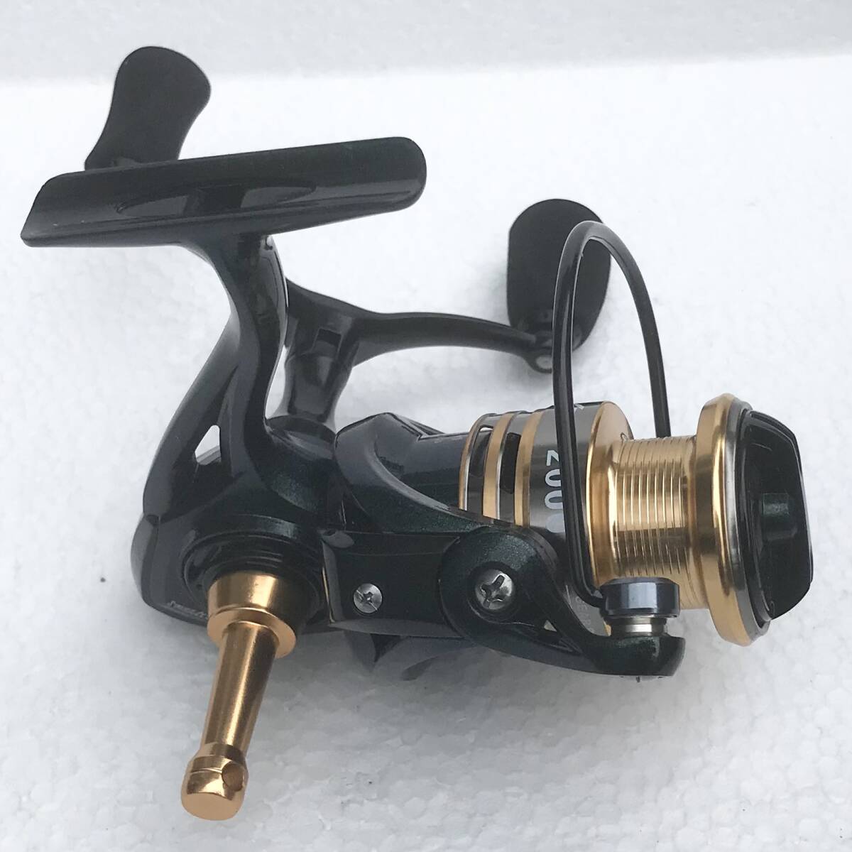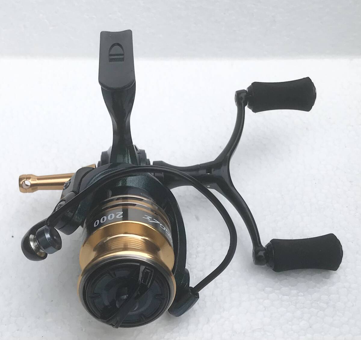 写真のSTRUGGLEスピニングリール2000ダークグリーンメタリックゴールド デュアルハンドル(新品未使用)を発送します(送料無料)。