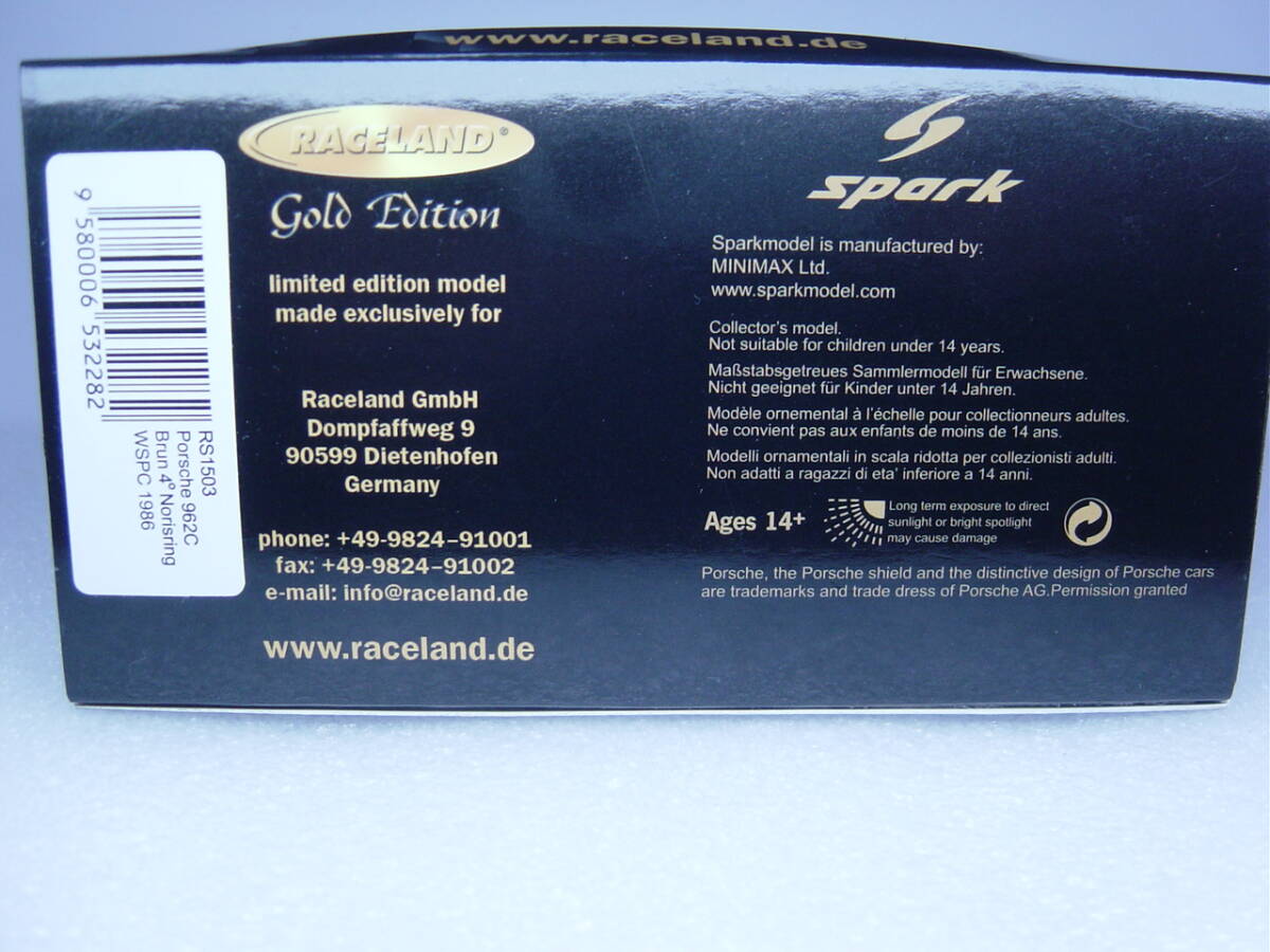 spark レースランド別注 1/43 Porsche 962C Brun Norisring WSPC 1986 #38 Frank Jelinski ポルシェ ブルン Rd.4ノリスリンク