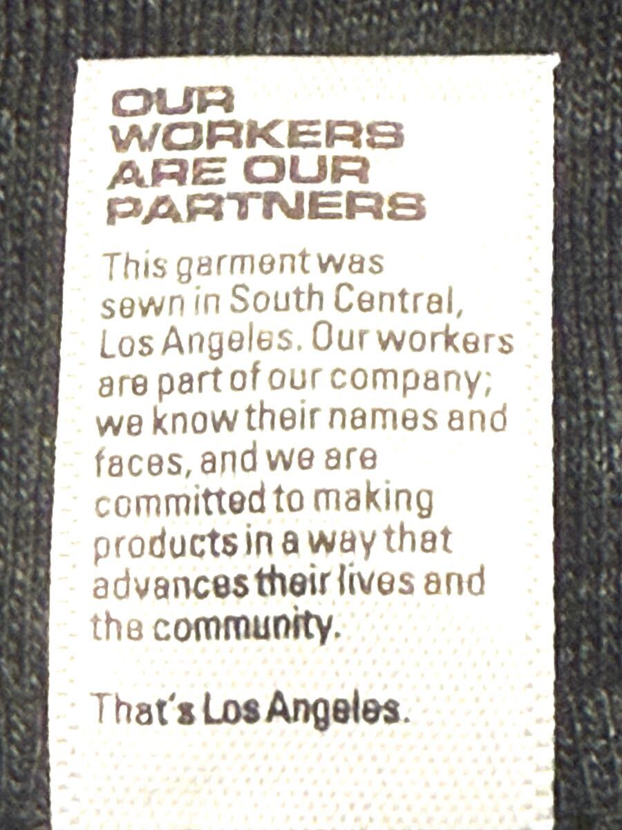 アメリカンアパレルの創業者・ダヴ・チャーニーが手掛ける「ロサンゼルスアパレル」は、アメリカに拠点を置くファッションブランド。アイテムは、アメリカ製にこだわったオーソドックスなデザイン。豊富なラインナップとカラーバリエーションで展開している。ブランドのコンセプトは、「徹底した社会的貢献と、全工程を自社工場で実施することで実現した高品質の両立」。アメリカ国内の生産を支援するため製品に使用する糸の半分以上をアメリカ産でまかなうなど、アメリカンアパレル創業時のコンセプトを大きく変えずに展開する。
