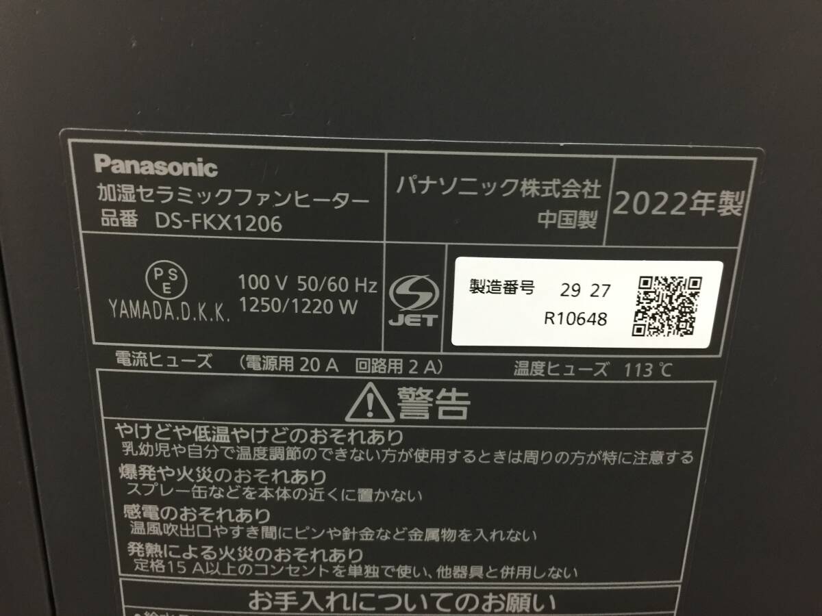 ★★パナソニック 加湿セラミックファンヒーター DS-FKX1206 2022年製★★ | ||||||||||||||||||||||||||||||||||||