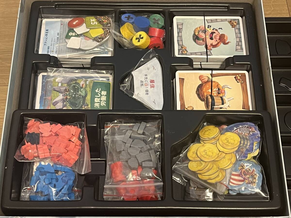 カード  / 勝利点ボード  / 遠征ボード  / 勝利点マーカー  / 親マーカー  / アクションタイル  / 氏族タイル  / 氏族アクションコマ (シール貼り付け済)  / 資材・労働者・ニンジャ労働者マーカー/攻撃トークン / 金貨トークン / 5倍トークン / 番号トークン / 氏族船トークン / 共有船トークン / ルール説明書 / 1人ゲーム説明書 / 地図