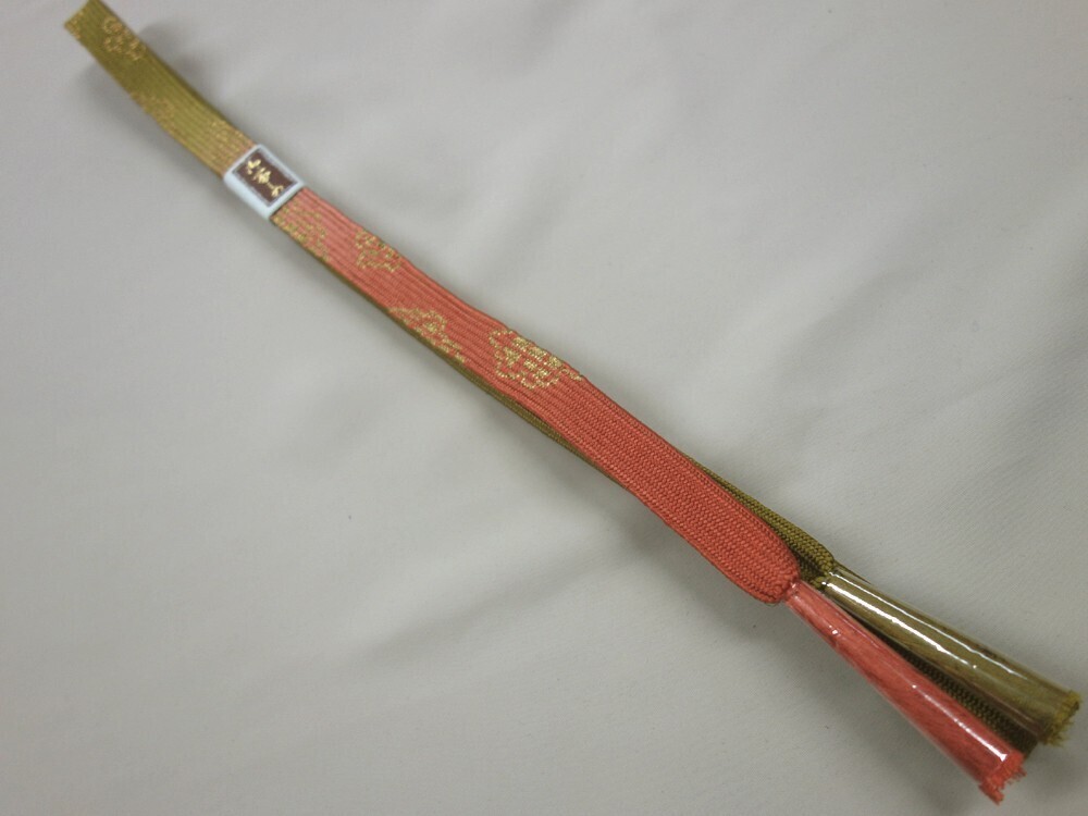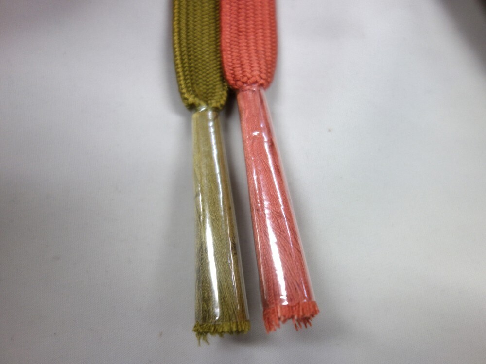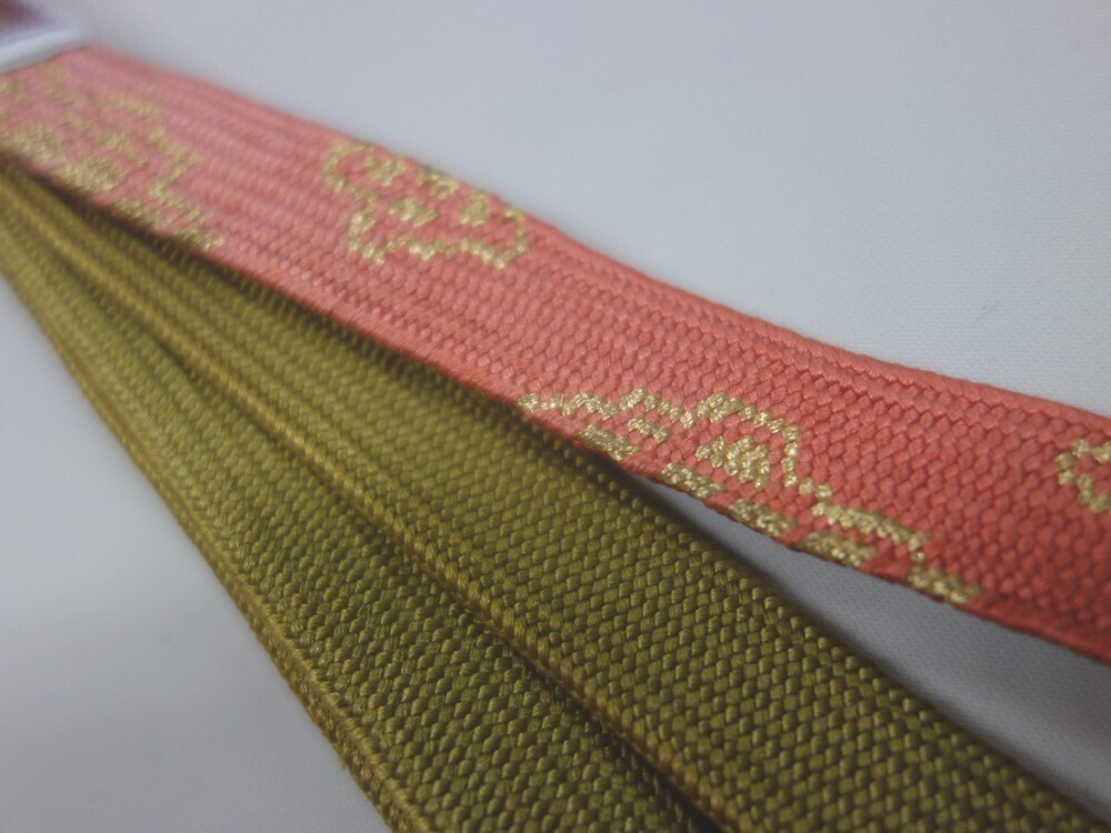 着物物語■K60702-17■未使用美品 帯締め 手組 くすんだ黄緑×くすみサーモンピンク
