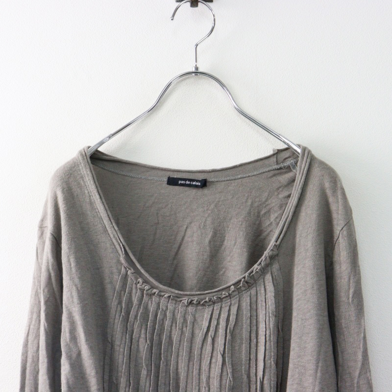 パドカレ pas de calais コットン リネン ピンタック チュニック 38/ベージュ系 トップス 長袖 プルオーバー【2400014439069】