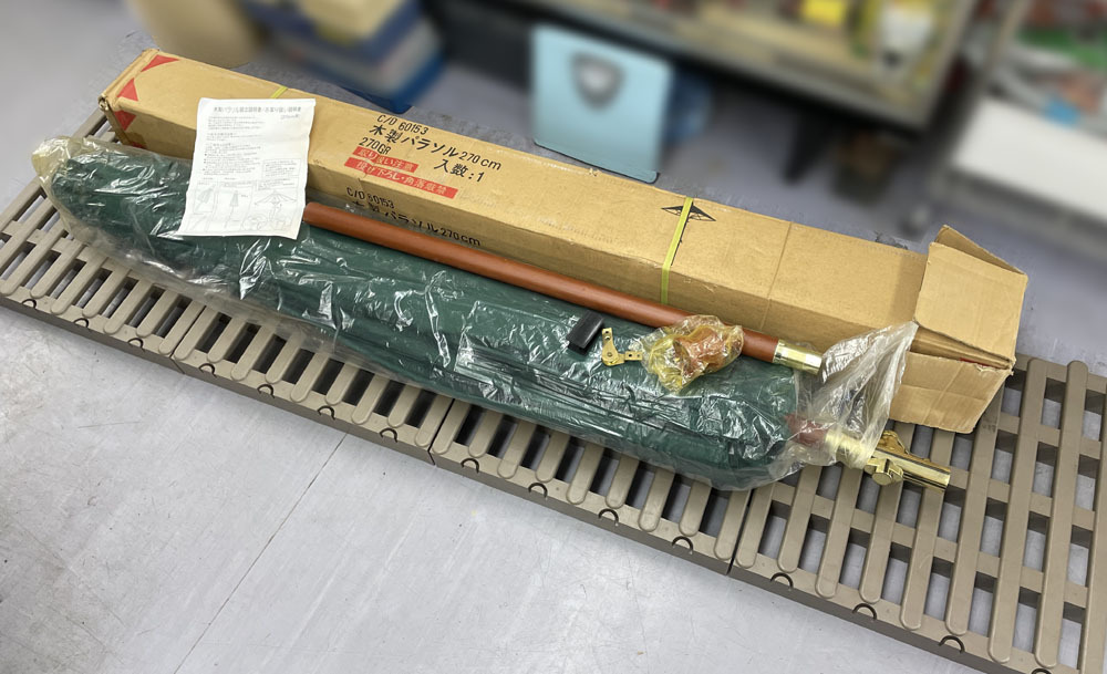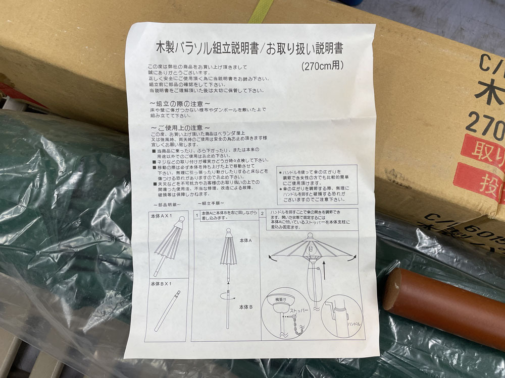 木製パラソル 270cm C/D 60153 270GR ウッドパラソル グリーン ベランダ 庭 カフェ 紫外線カット 店頭引き渡し歓迎 札幌市手稲区