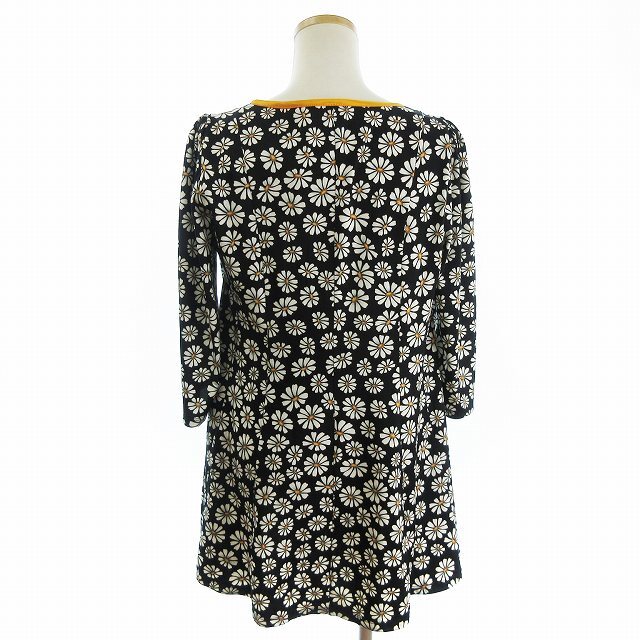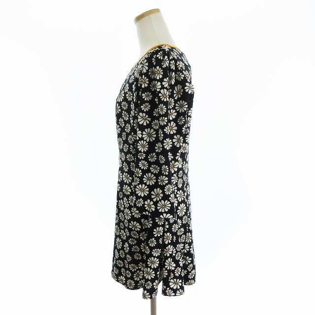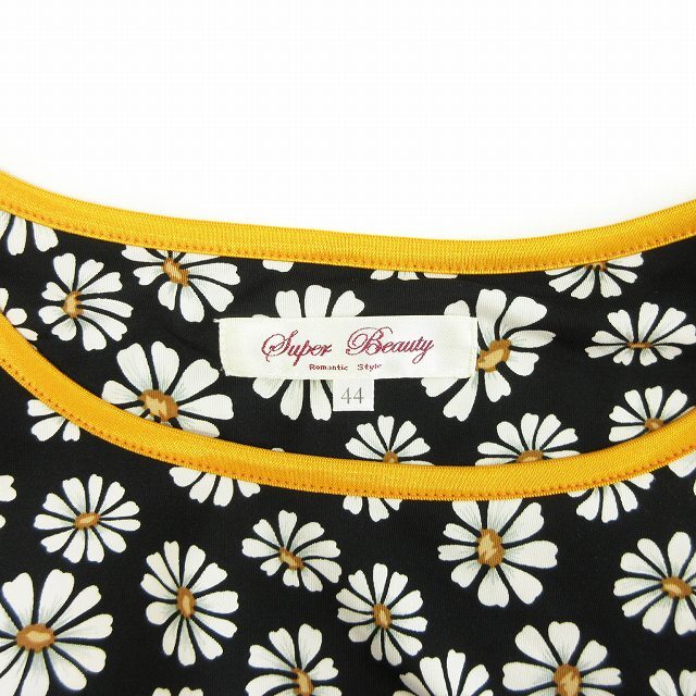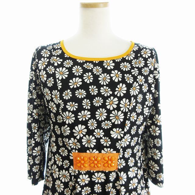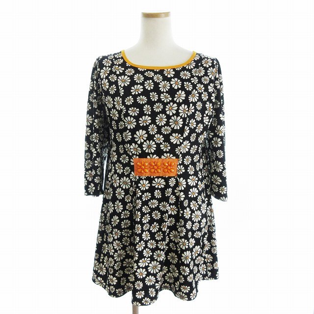 美品 スーパービューティ SuperBeauty ワンピース チュニック 七分袖 ミニ丈 装飾 花がら 黒 ブラック 44 レディース