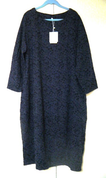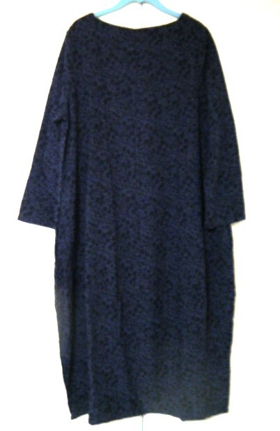sanpo さんぽ 長袖 ロング ワンピース F 紺 総柄 れ6841 バルーン レターパックプラス