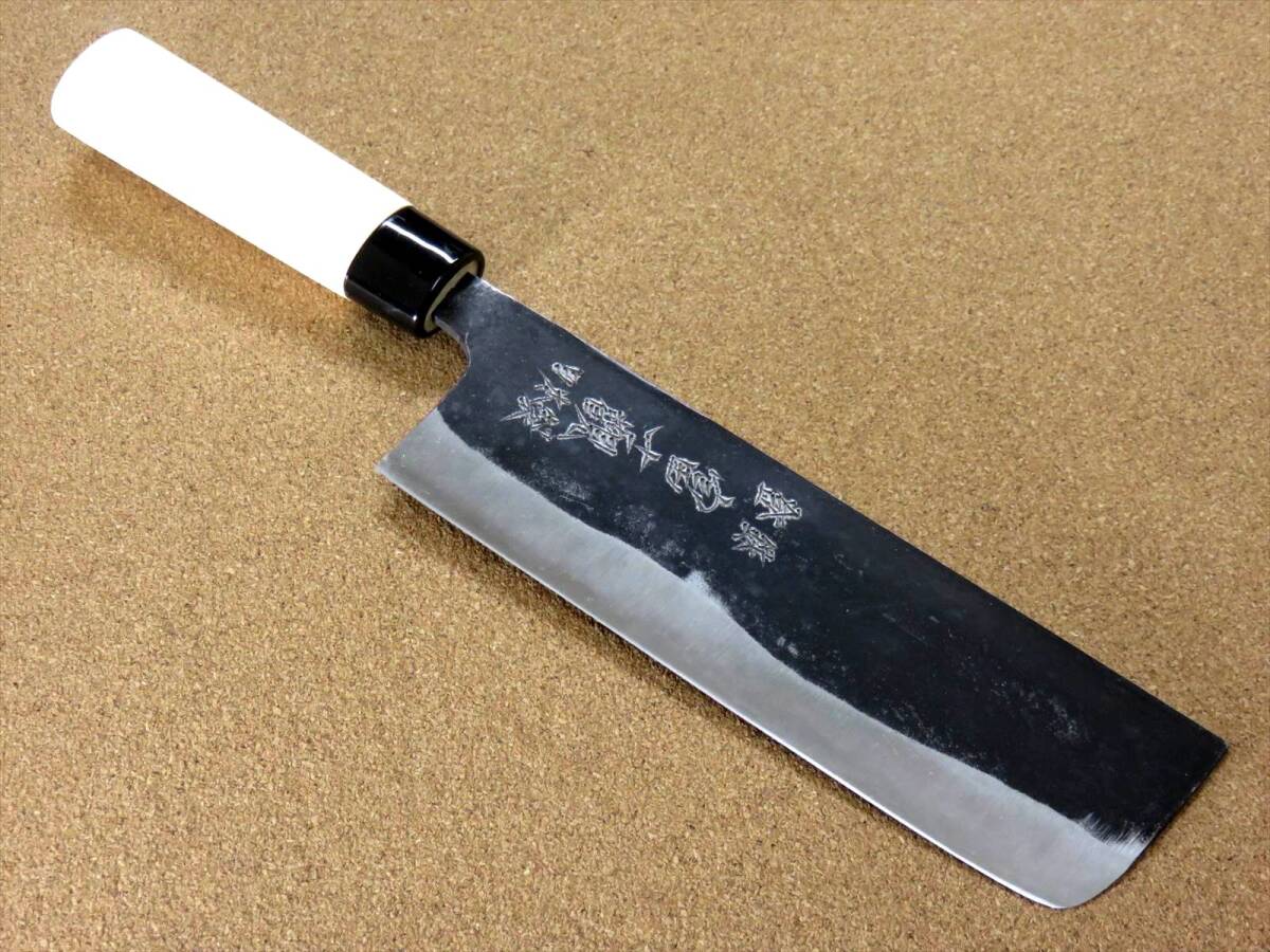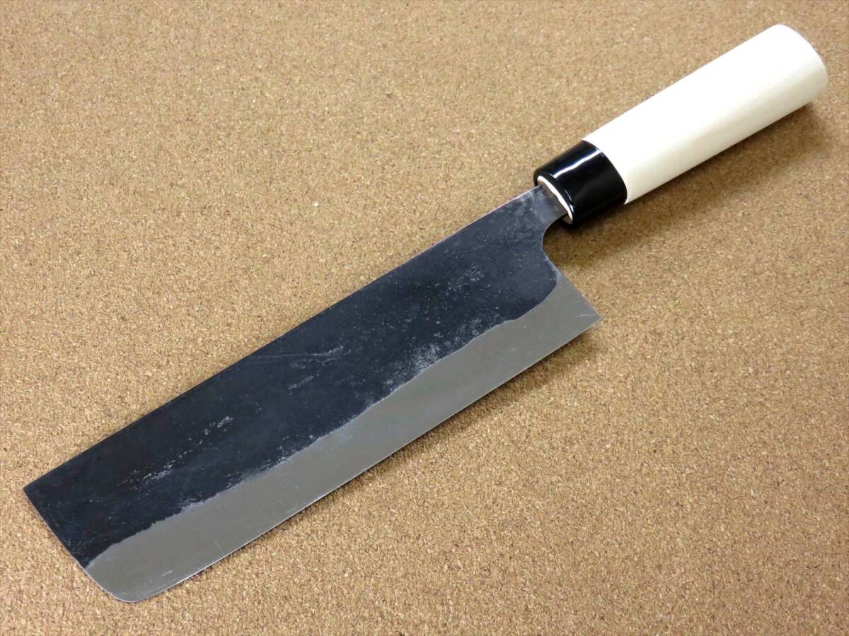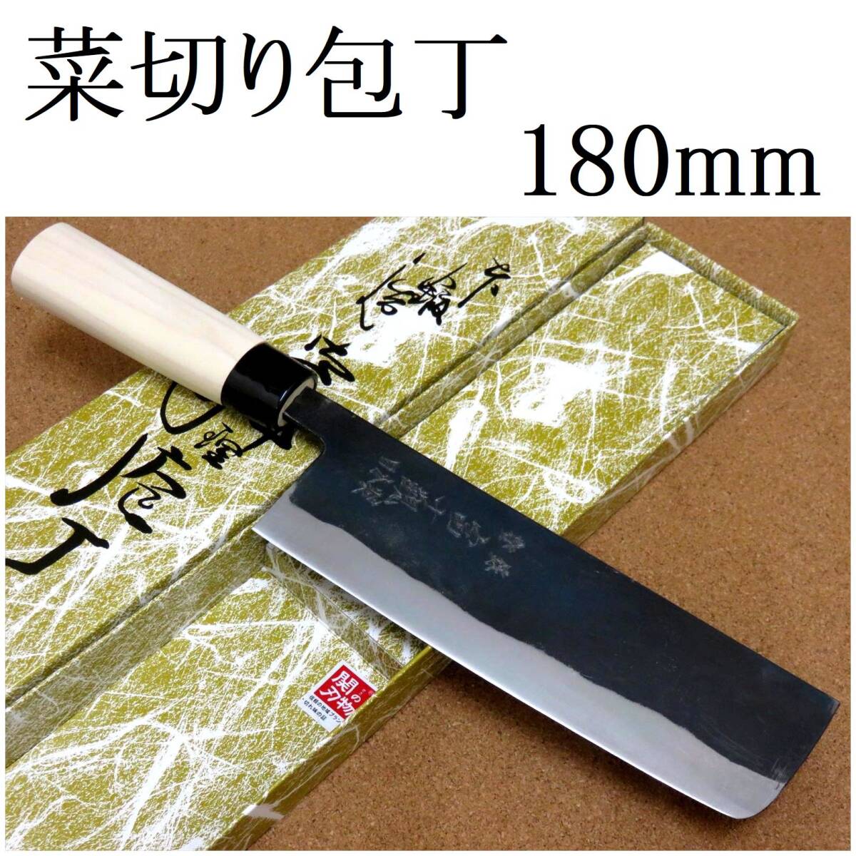 関の刃物 菜切り包丁 18cm (180mm) 富士觀 黒打 青紙2号 軟鉄 炭素鋼 朴の木 口金付き 両刃包丁 家庭用 野菜切り かつらむき 日本製