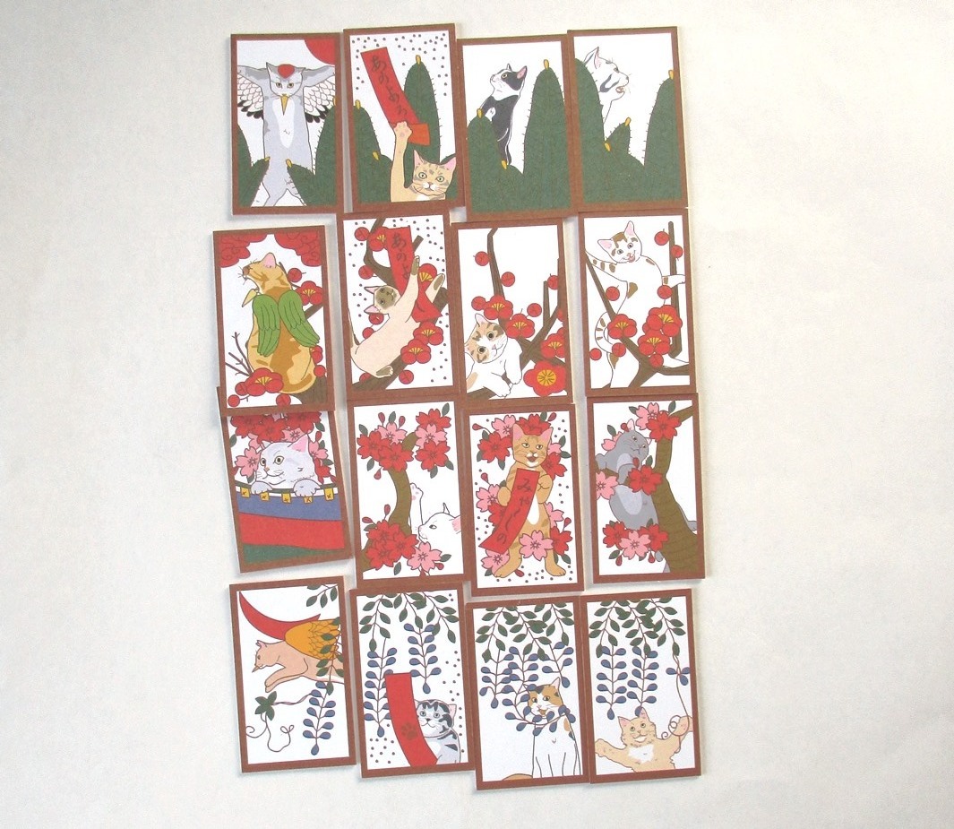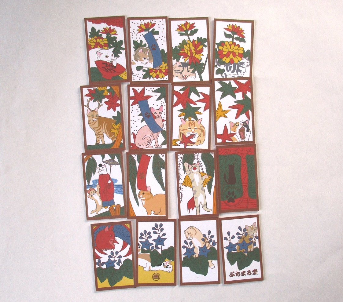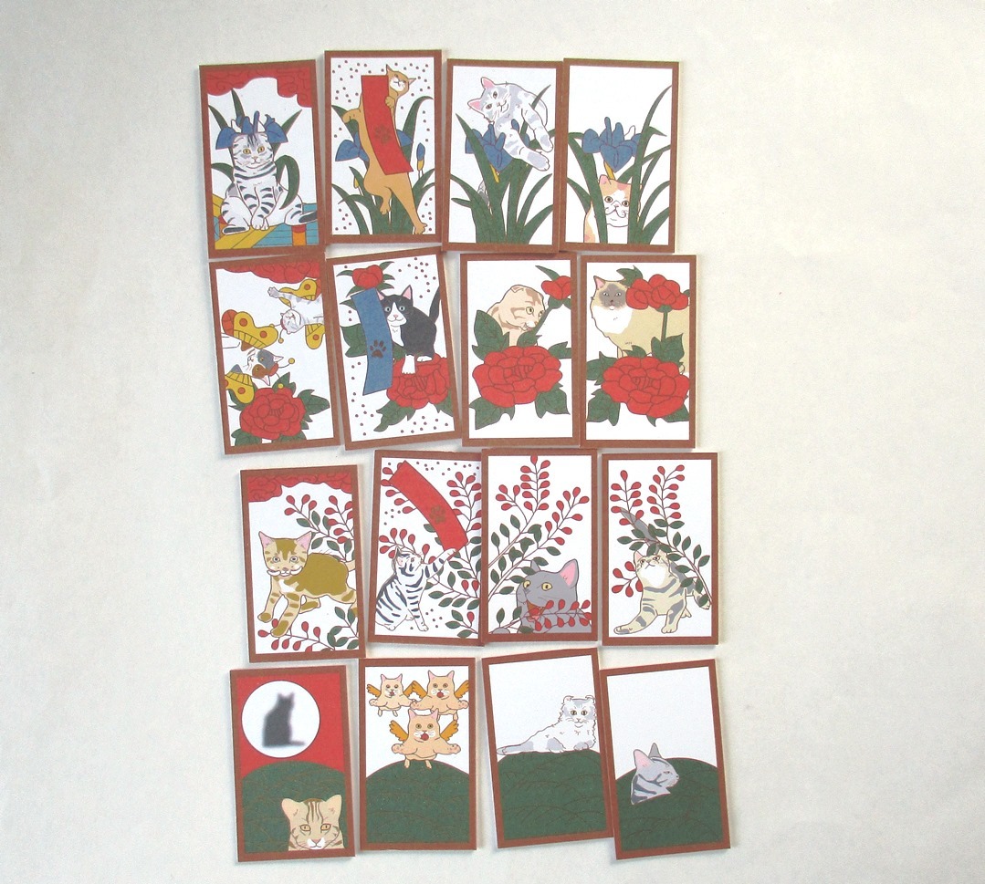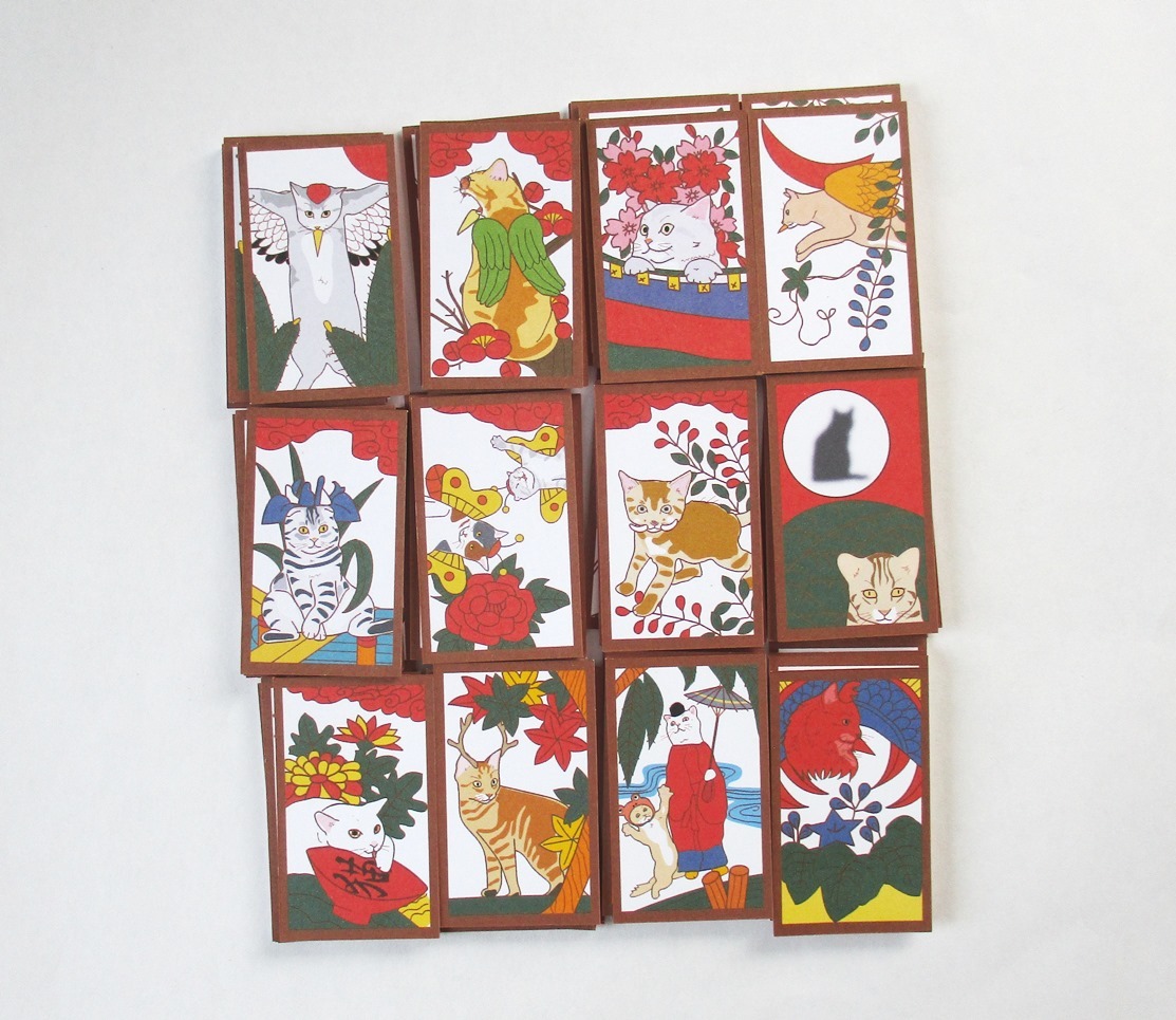 ★<ハンドメイド>★猫花札 「ネオ赤」(おなじみ花札の最新版です)