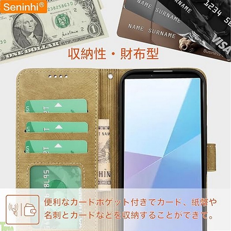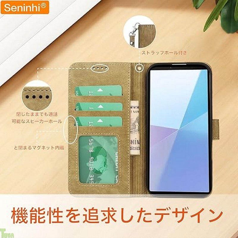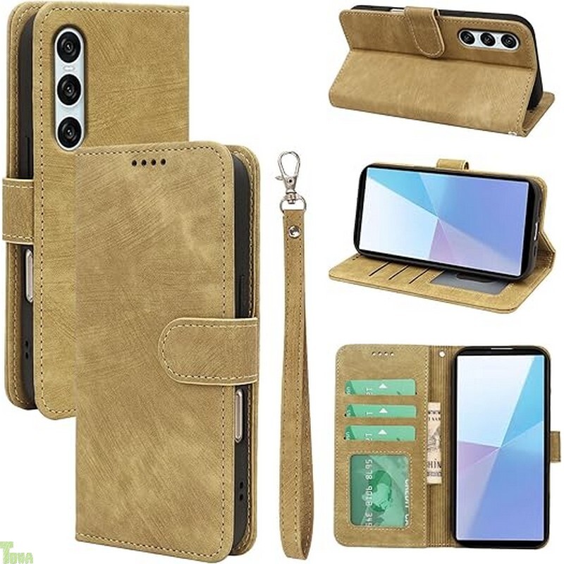 ライトブラウン 手帳型 シンプル お洒落 高品質 PUレザー エクスペリア Xperia 1 VII 保護 財布型 スタンド機能 カード収納 ケース カバー