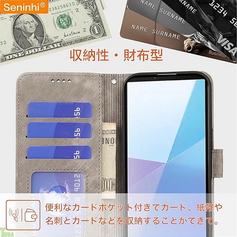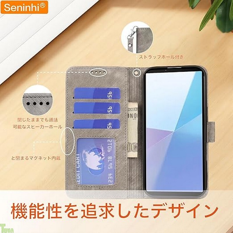 グレー 手帳型 シンプル お洒落 高品質 PUレザー エクスペリア Xperia 1 VII 保護 財布型 スタンド機能 カード収納 ケース カバー