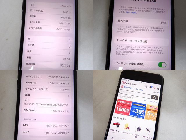 メーカー:アップル 品 名 :iPhone SE3 A2782 品 番 :MMYC3J/A 容 量 :64GB カラー :ミッドナイト 商品の状態:現状品 SIMフリーの端末ではございますが、ソフトバンク系SIMでの使用不可となります。 ソフトバンク系以外のSIM、Wi-Fi環境下でのみご使用可能な端末です。 側面に擦れキズ多めです。 上記状態のため現状品での出品となります。 充電・通電・Wi-Fi接続確認後に、初期化をおこなっております。 IMEI:351191409551761 キャリア:ソフトバンク SIMロック:なし バッテリーの状態:最大容量 97% 付属品 :本体・ケーブル・箱 別途:その他、いろいろ出品しています |