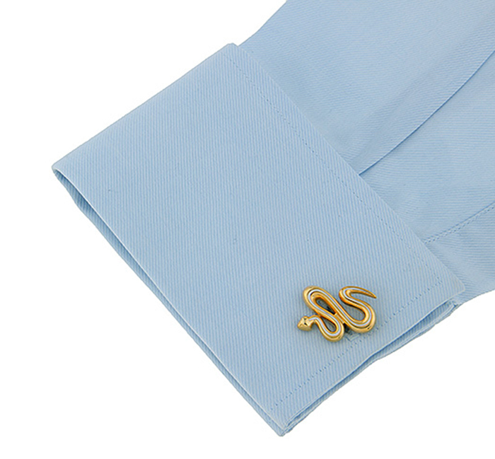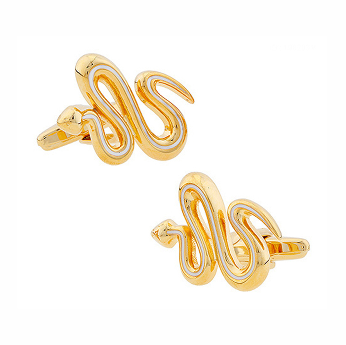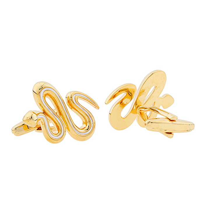 【カフス ボタン/カフリンクス】白蛇 シロヘビ 縁起物 ホワイト×ゴールド スーツ cuf-0498
