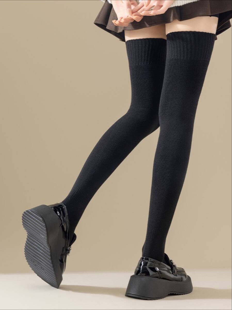 [レディース靴下]ls2446 秋冬 厚手 無地 ニーハイソックス ベーシック