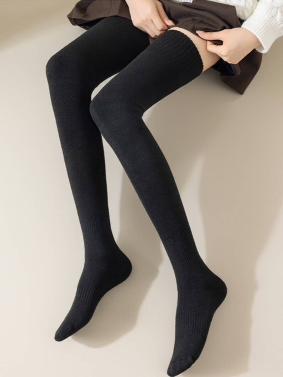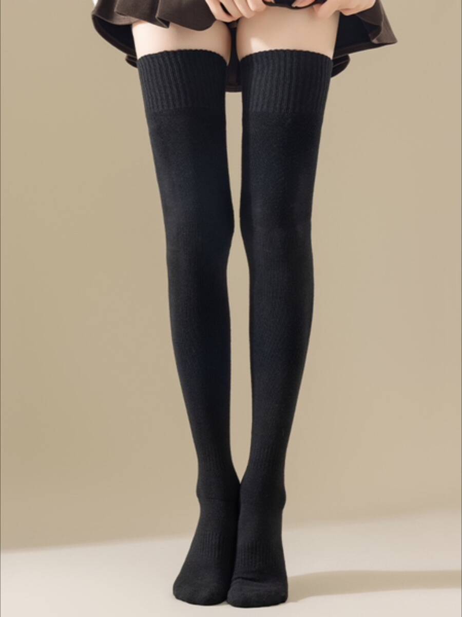 暖かな裏起毛パイル地のシンプルで使いやすいニーハイソックスです。