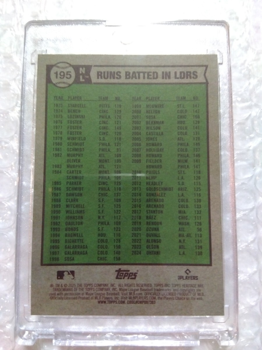 今シーズンもMVP真っしぐらで活躍中の大谷翔平選手とアダメス/マチャドのコンボカード(ナショナルリーグ打点リーダー)です。