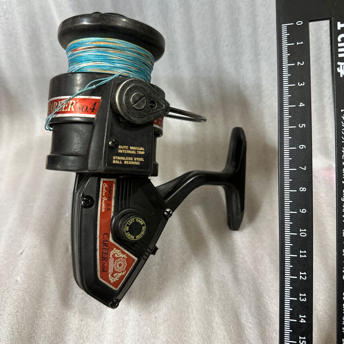 大森製作所(Ohmori S.S.)製のスピニングリール「ダイヤモンド CAREER No.4」の出品です。