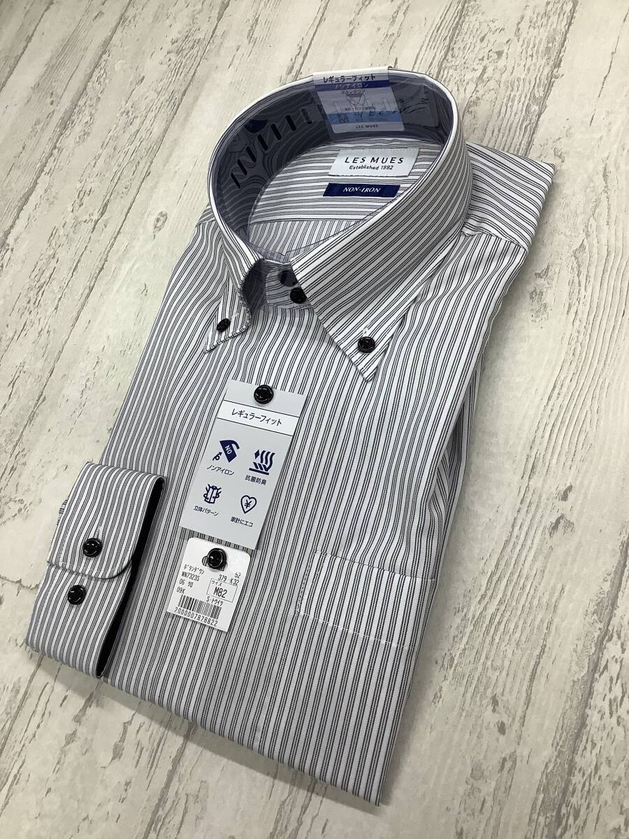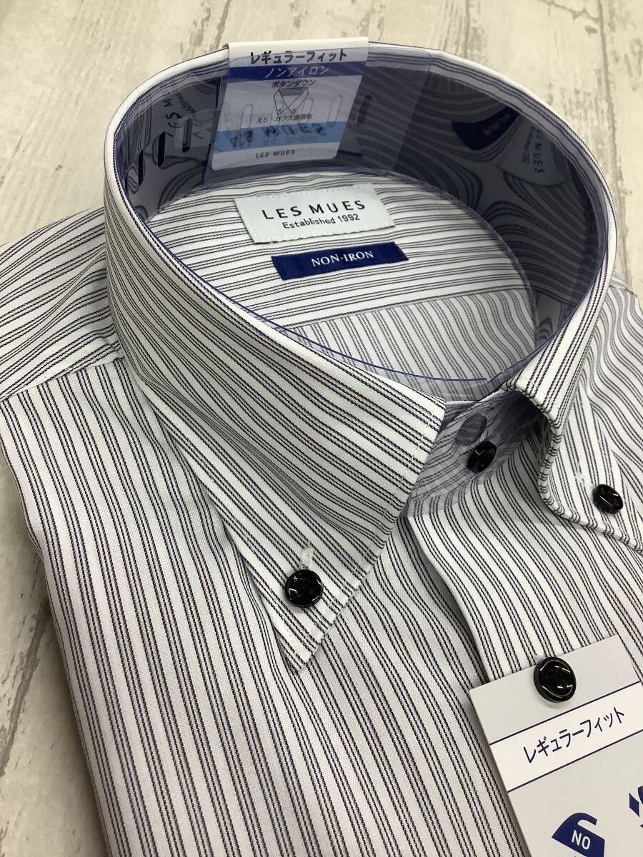 39-82 長袖Mサイズ ★ボタンダウンドレスシャツ ノンアイロン 綿ポリ スーパーストレッチ素材  ★細やかなストライプ柄