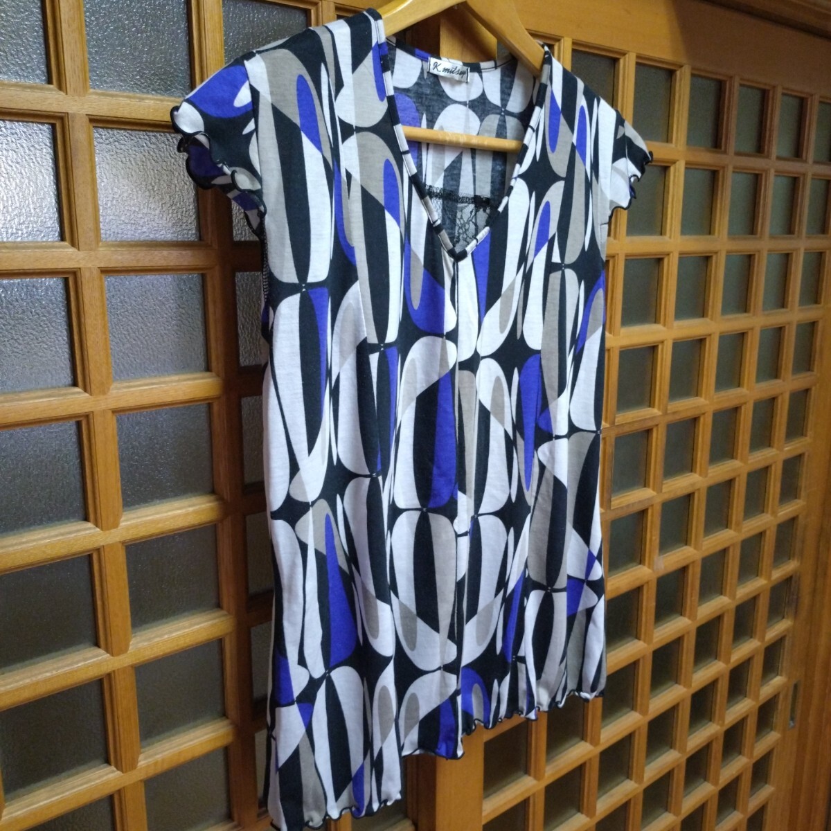 K.mitsuyo ケイ ミツヨ カットソー M-L フリー ウイングド・スリーブ フレンチ・スリーブ 半袖 フリル 軽量