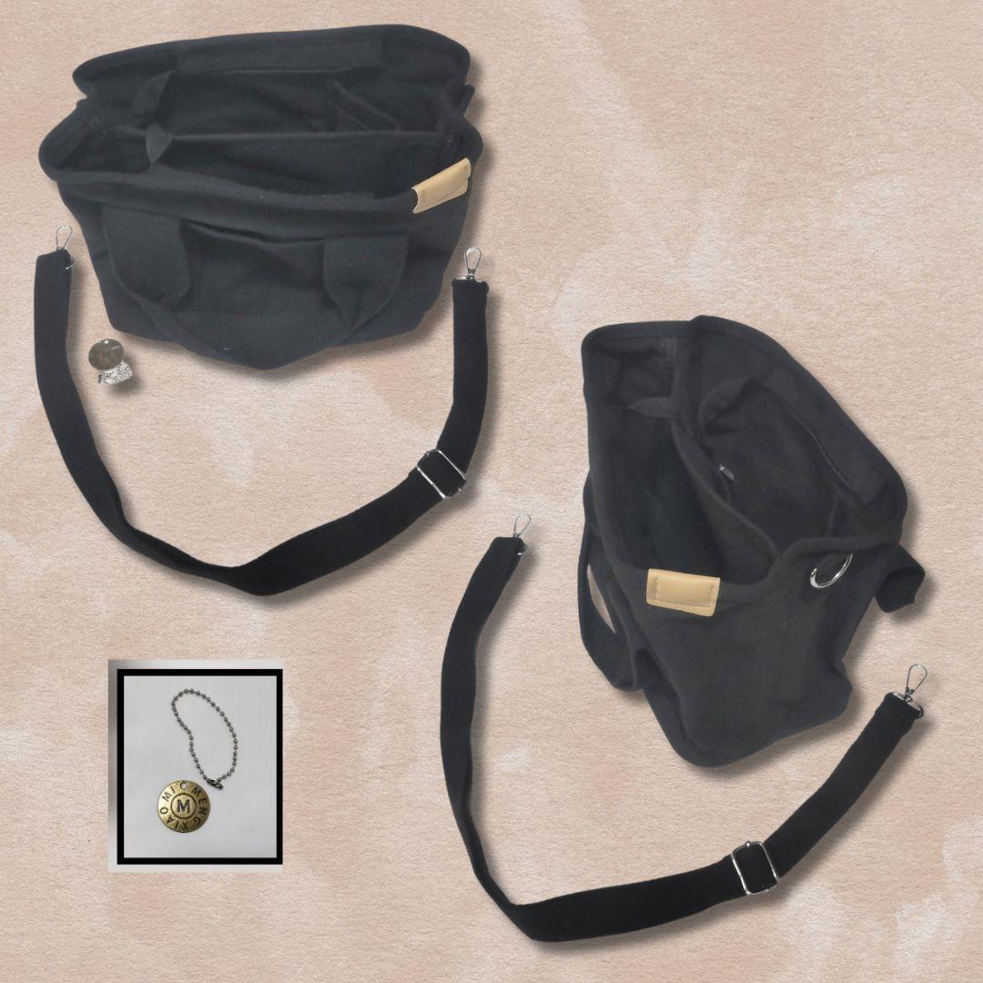 持ち手に取り付け可能なロゴMのキーホルダーが付属しています。