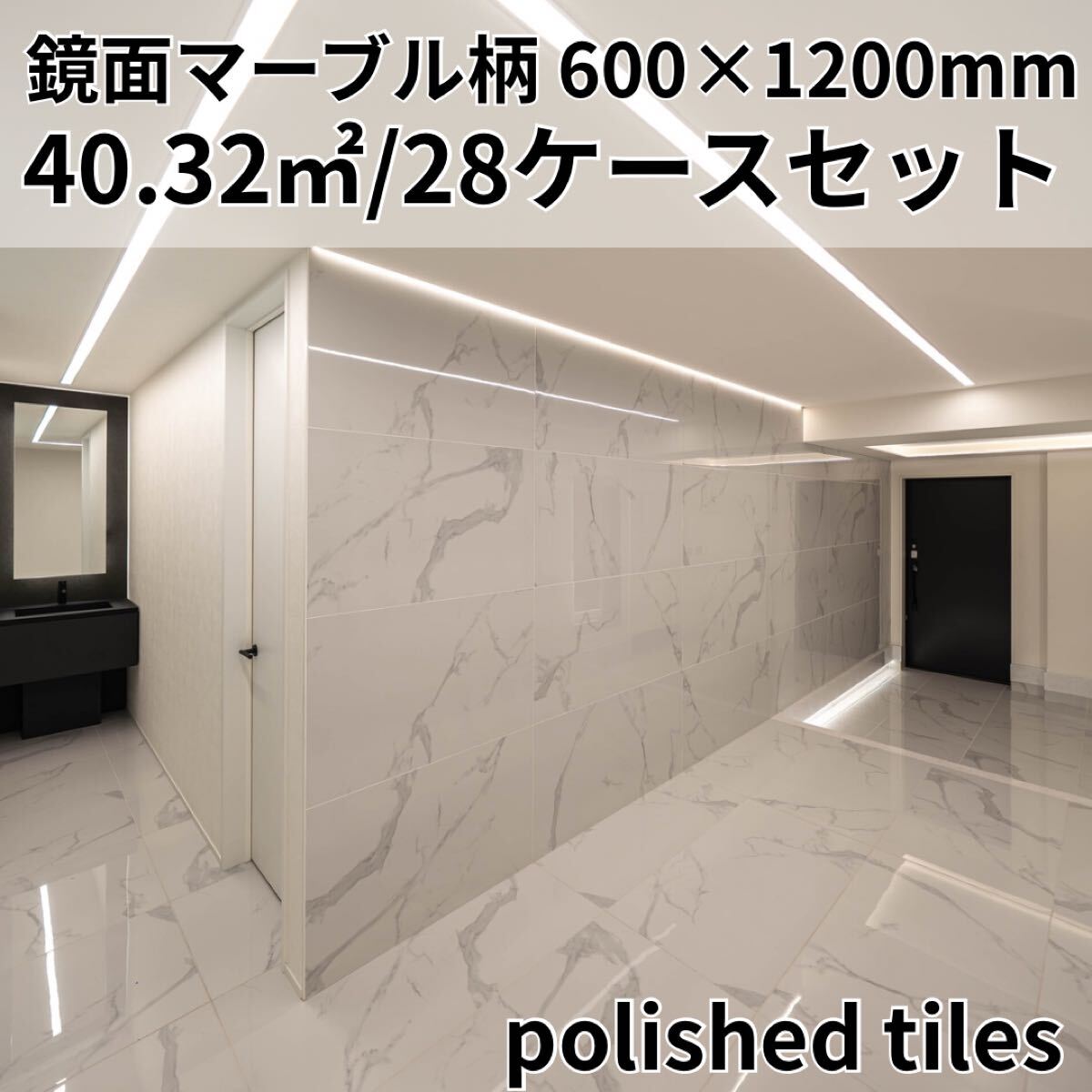大理石調 鏡面タイル 600×1200mm 白マーブル 28ケースセット(40.32㎡分)
